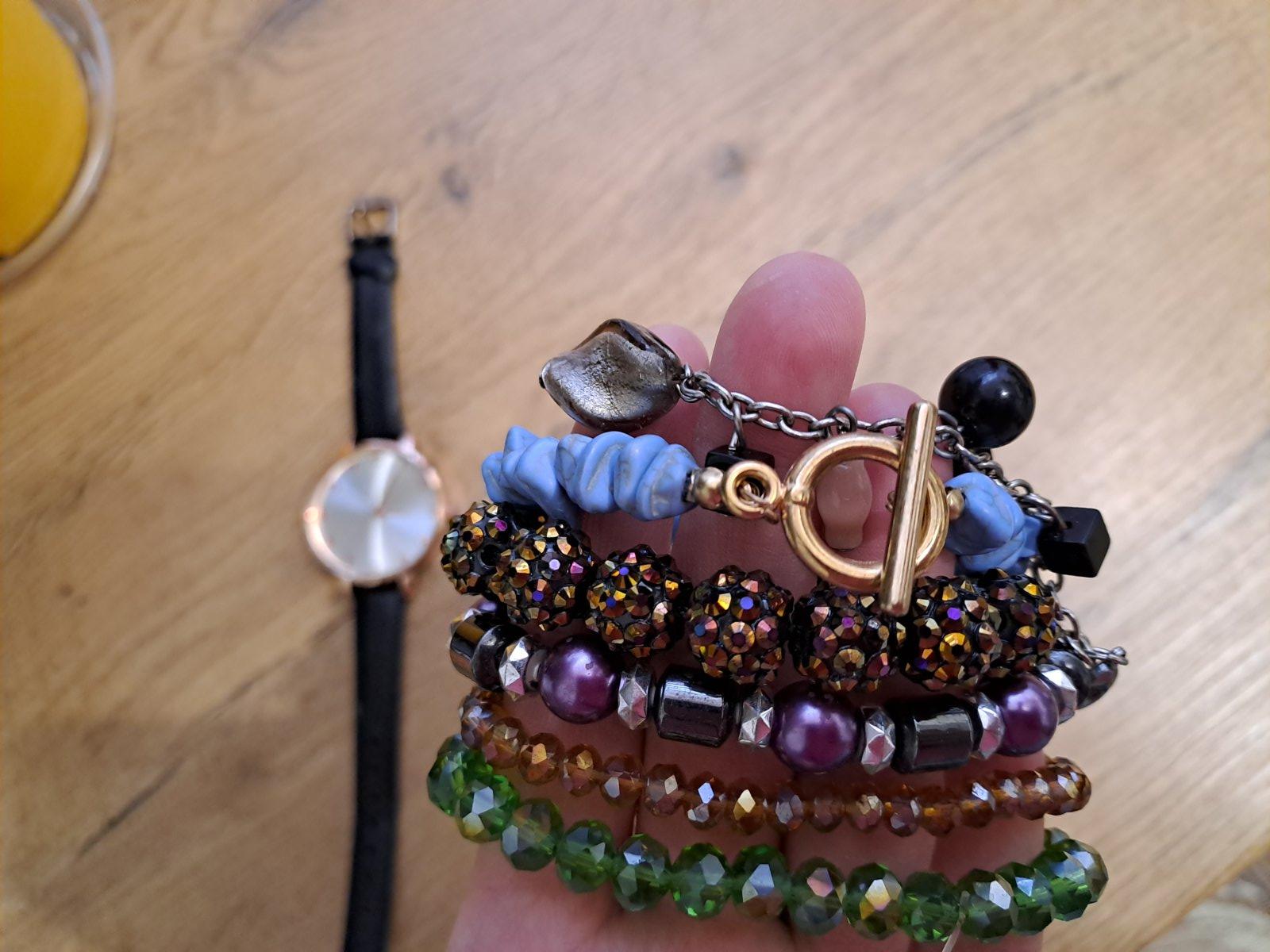 Predám hodinky a náramky len všetko spolu za 14 eur + pošta .... doložim ešte dvojo náušníc. Bižutéria nebola ani nosená , hodinky pár krát. Všetko TOP stav . Nové!!!! Cena len spolu . Platba na účet !!!!