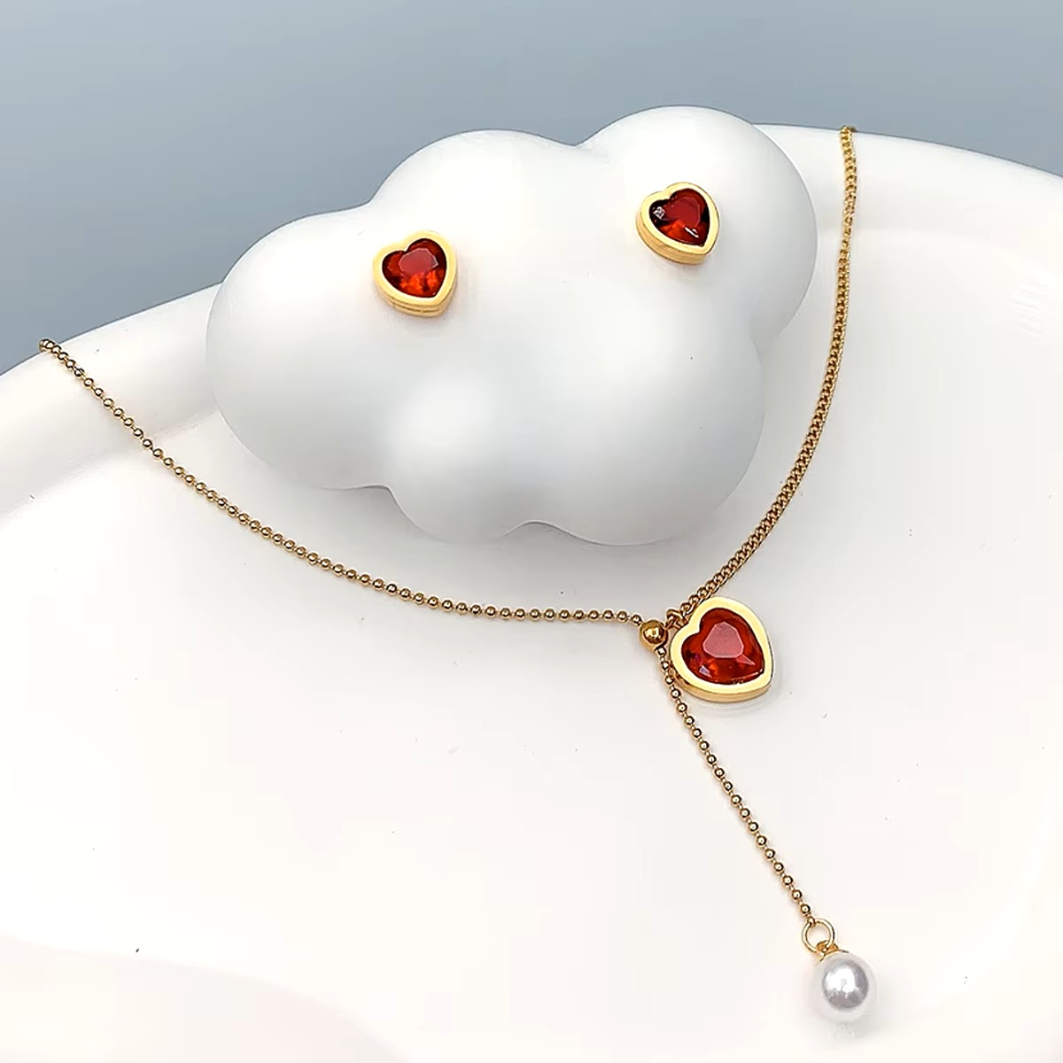 Set šperkov z chirurgickej ocele - Červené srdce