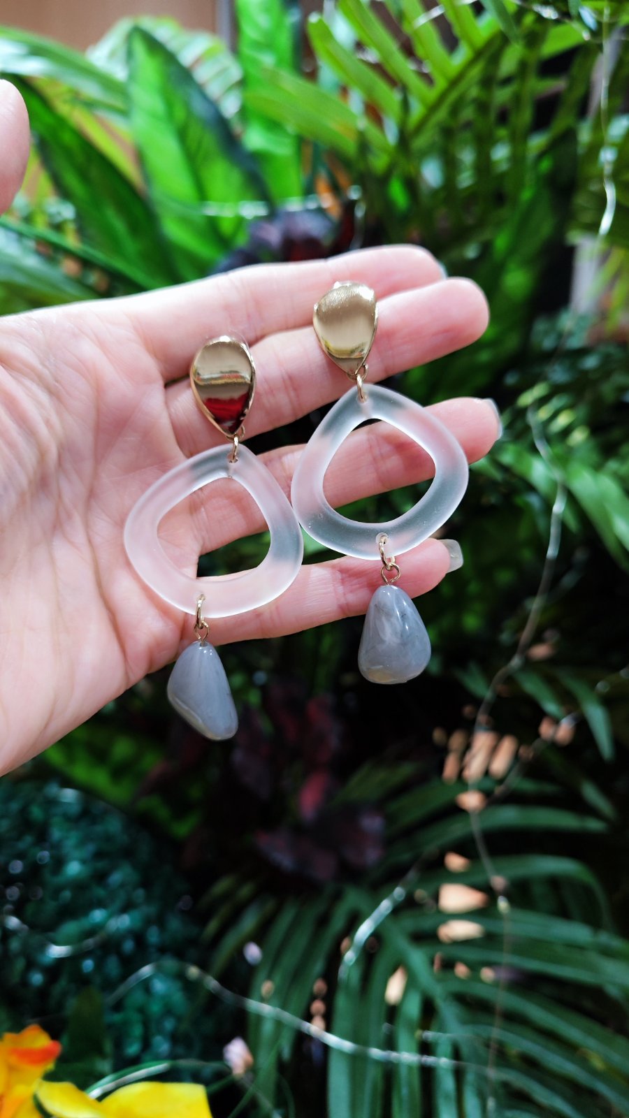 Napichovacie visiace náušnice so šedými kameňmi, posuniem za cenu + poštovné prevodom alebo osobne v Bratislave.
