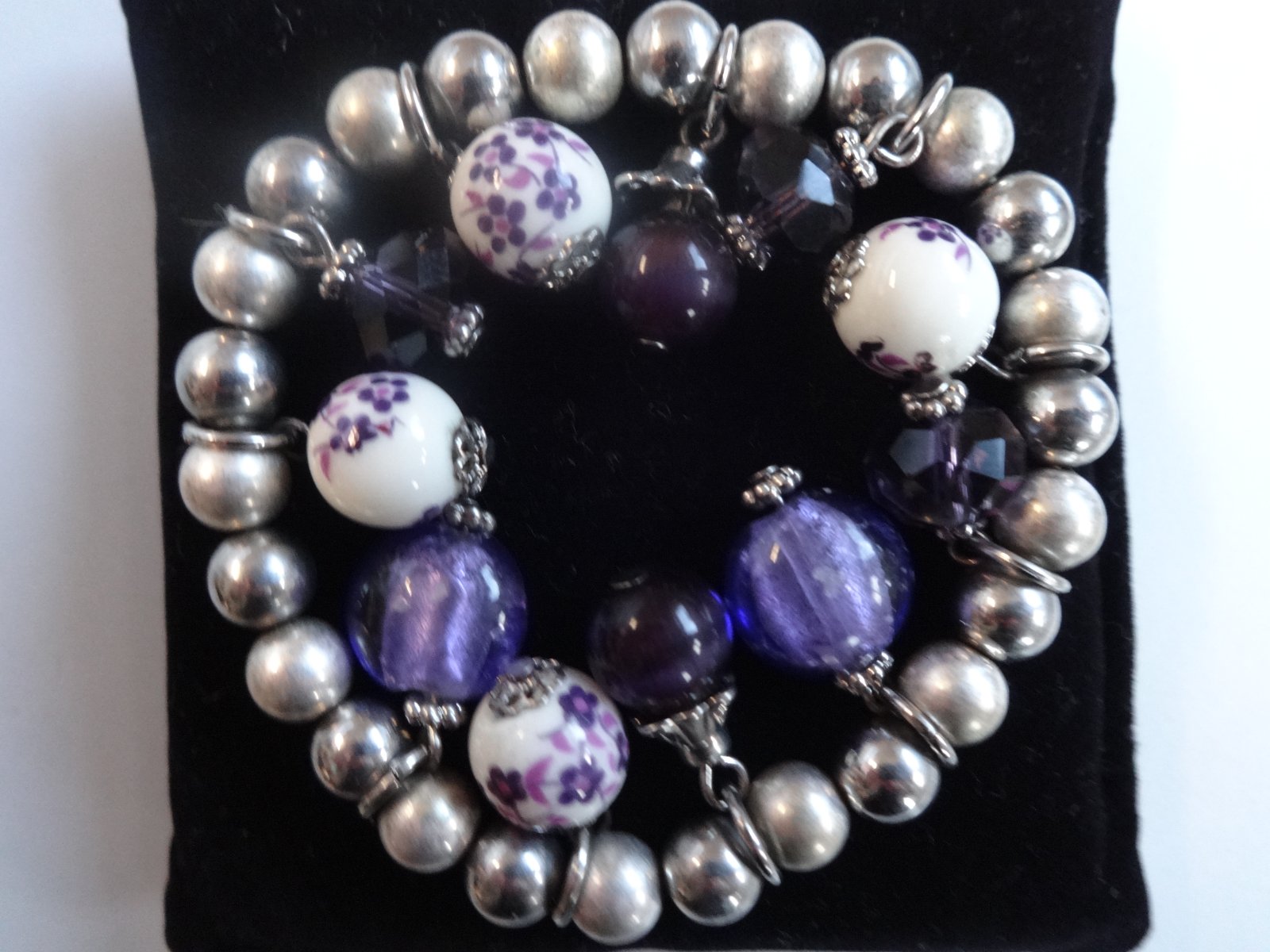 Vo výbornom stave, nežné korálky, strieborná - biela - fialová, darujem k nákupu z mojej ponuky bižu nad 10,00 (bez pošty )