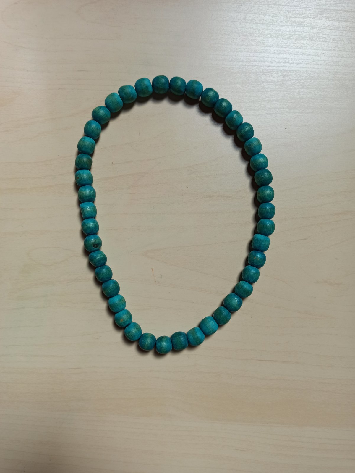 Drevené korálky. Tyrkysová farba. Priemer 24cm, 1,5cm ma jeden korálik.