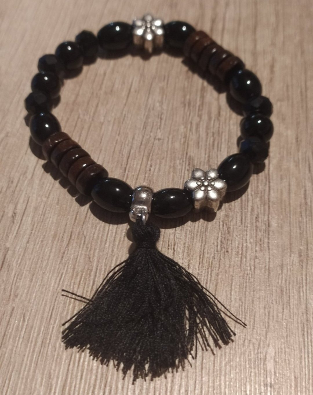 Náramok je vyrobený z čierneho a vločkového obsidianu. ČIERNY OBSIDIÁN má ochrannú moc. Odháňa všetko negatívne a odstraňuje nepriateľské myšlienky. Umožňuje vám oprostiť sa od starých lások a poča...