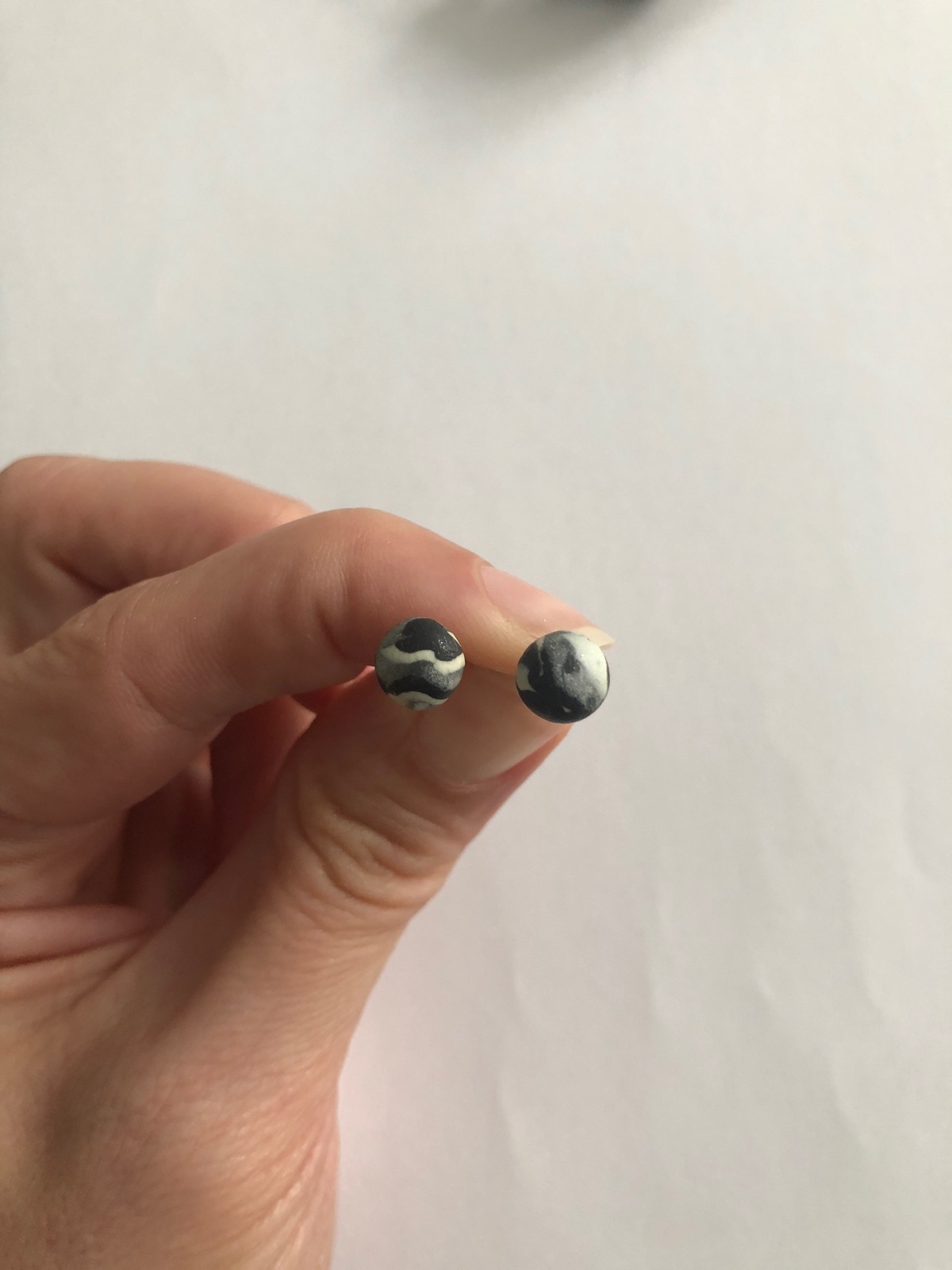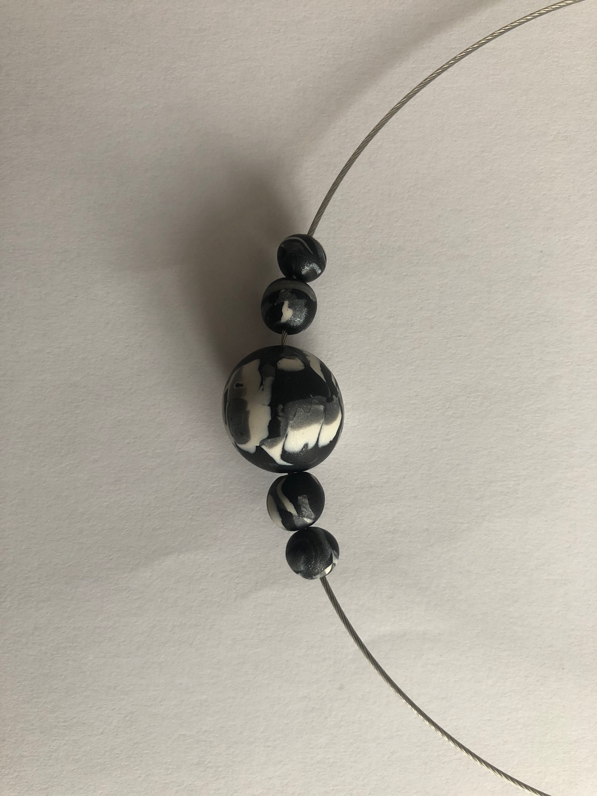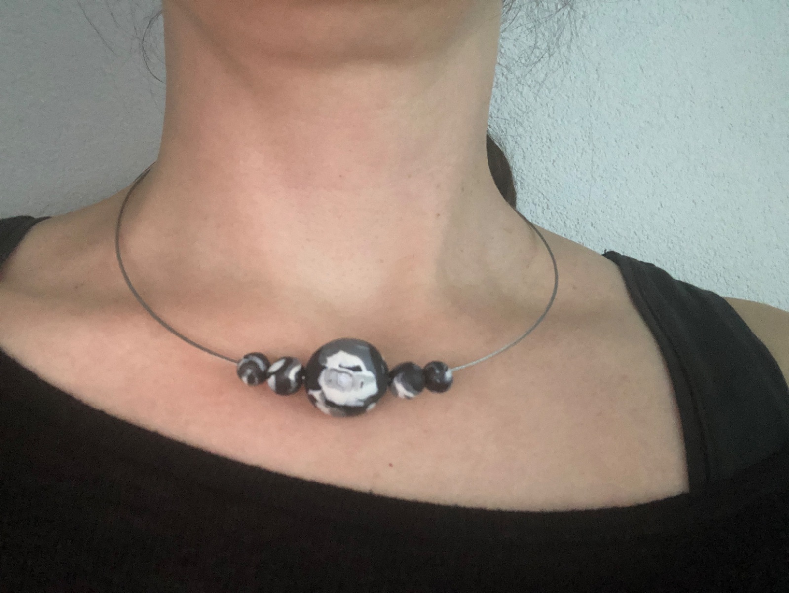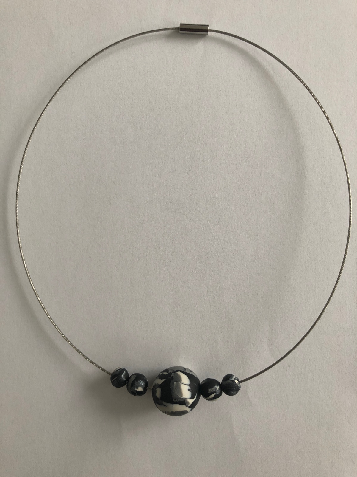 Handmade sada náhrdelník a zapichovacie náušnice z polymérovej hmoty, farba- čierno, biela, šedá.