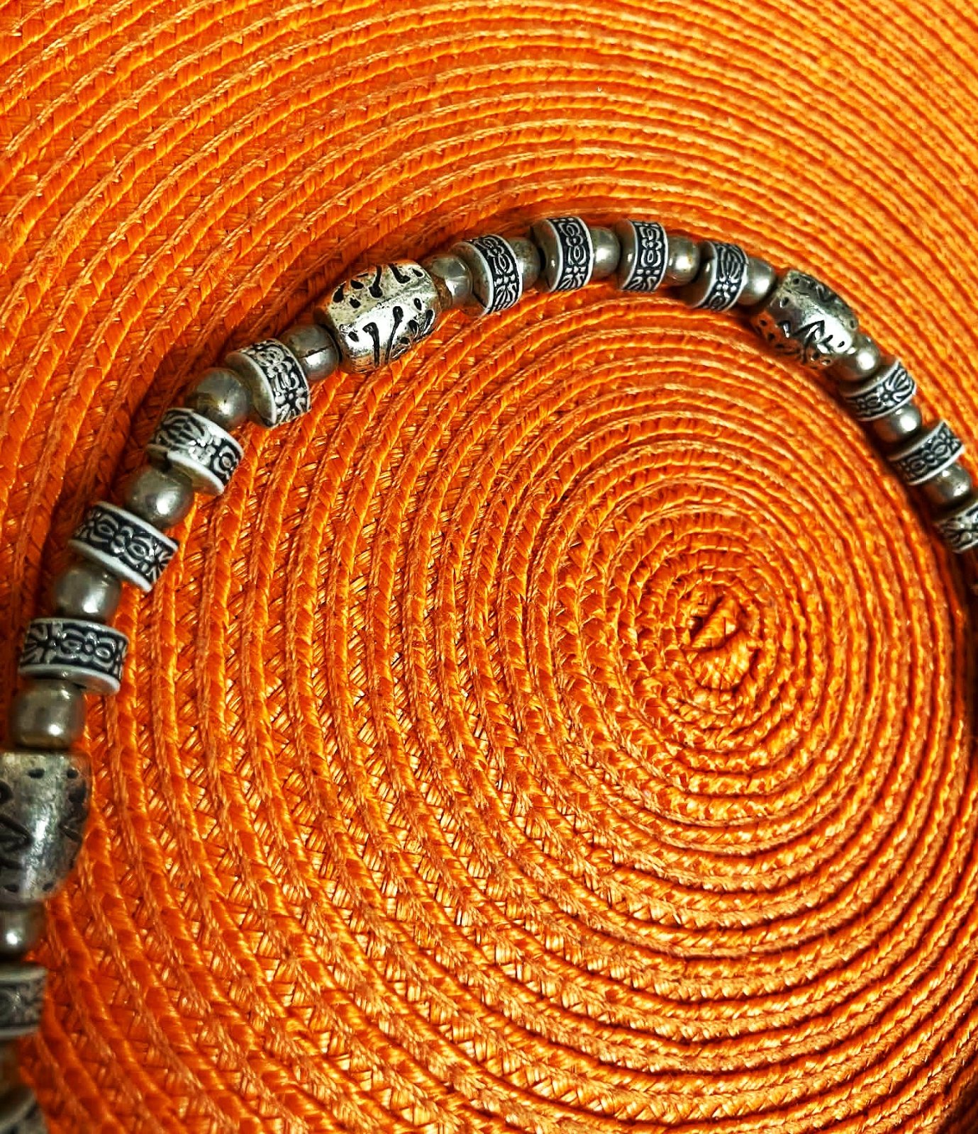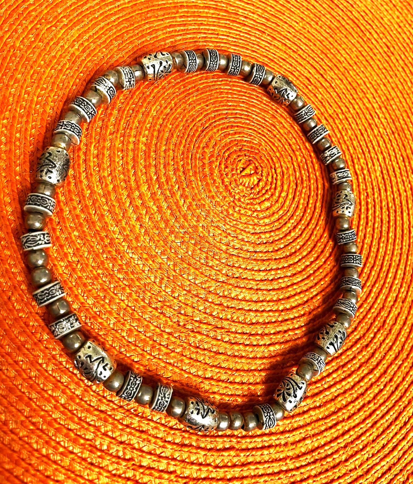 krásny unisex náhrdelník ku krku,mexické striebro,na silikónovú gumičku,pekne sa natiahne a prejde cez hlavu, obvod = 41 cm,pozri aj náramok