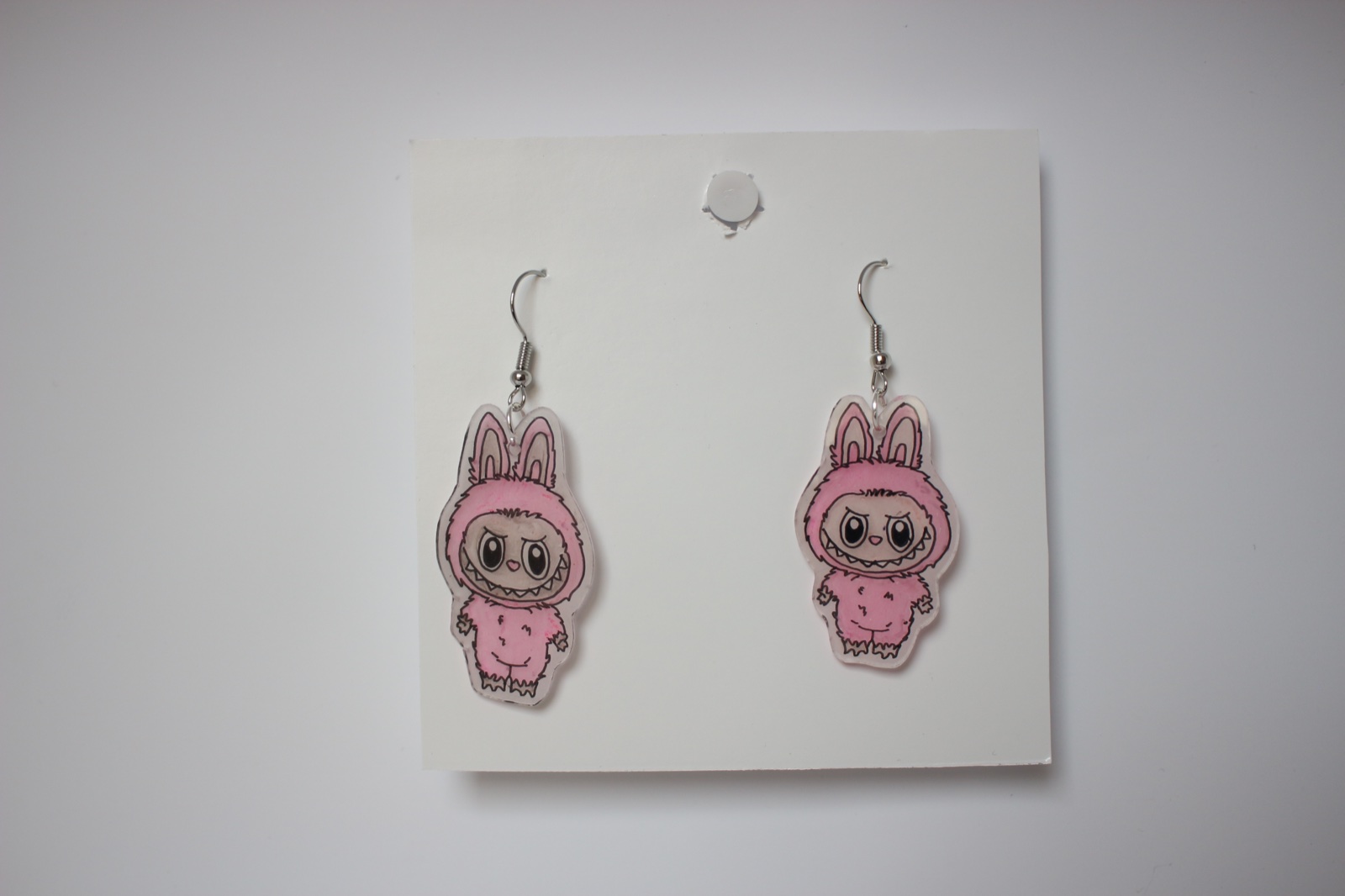Originálne ručne robené náušnice z plastu inšpirované aktuálnym trendom Labubu 🐰 – cute aj trochu edgy zároveň.
