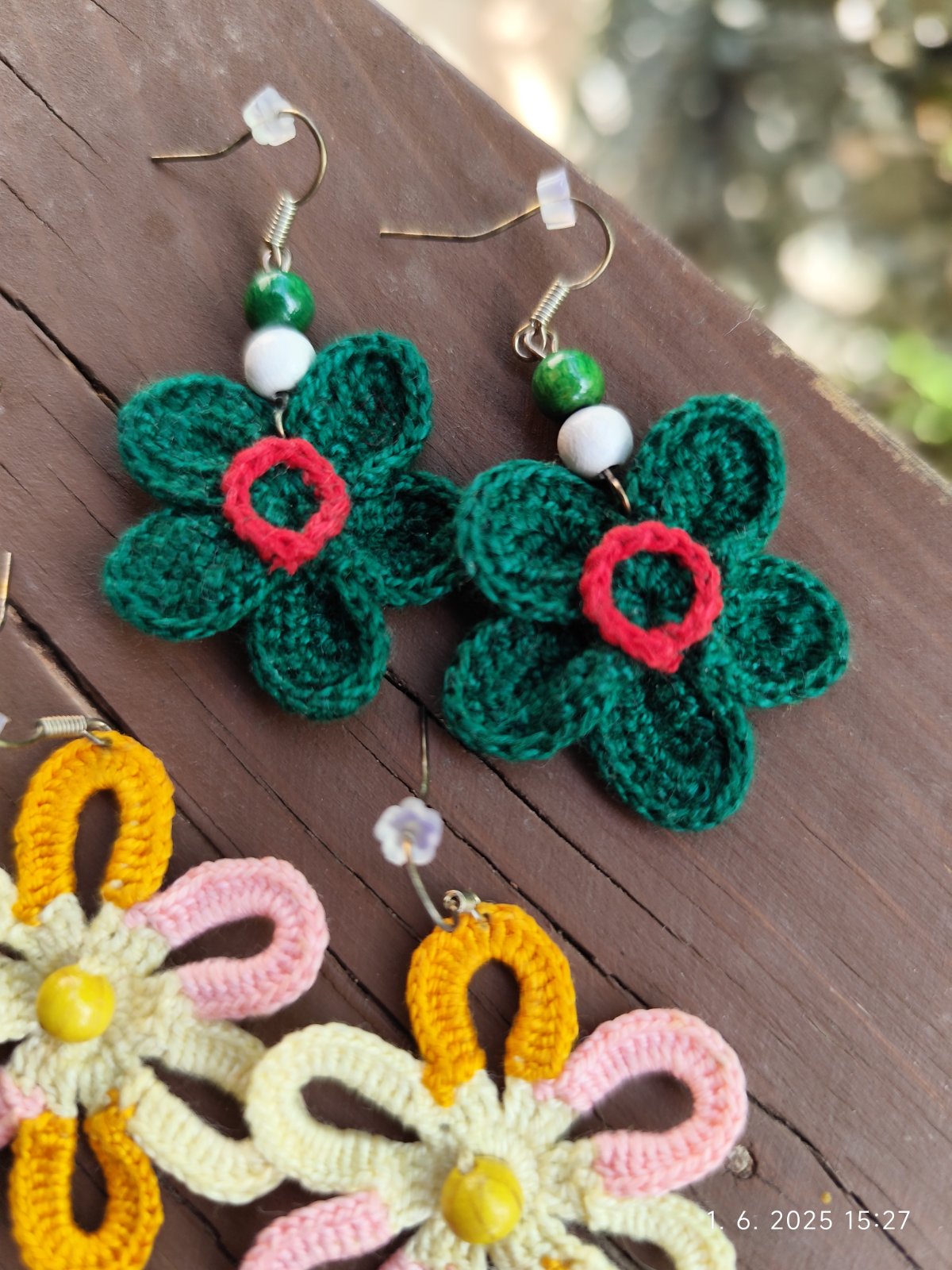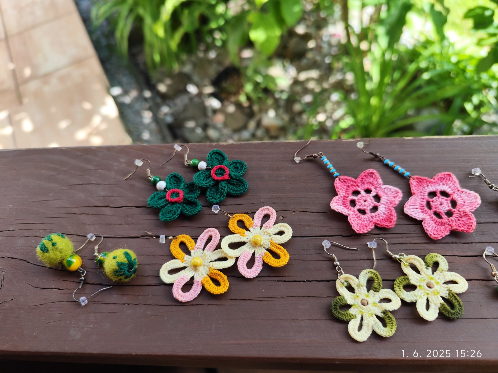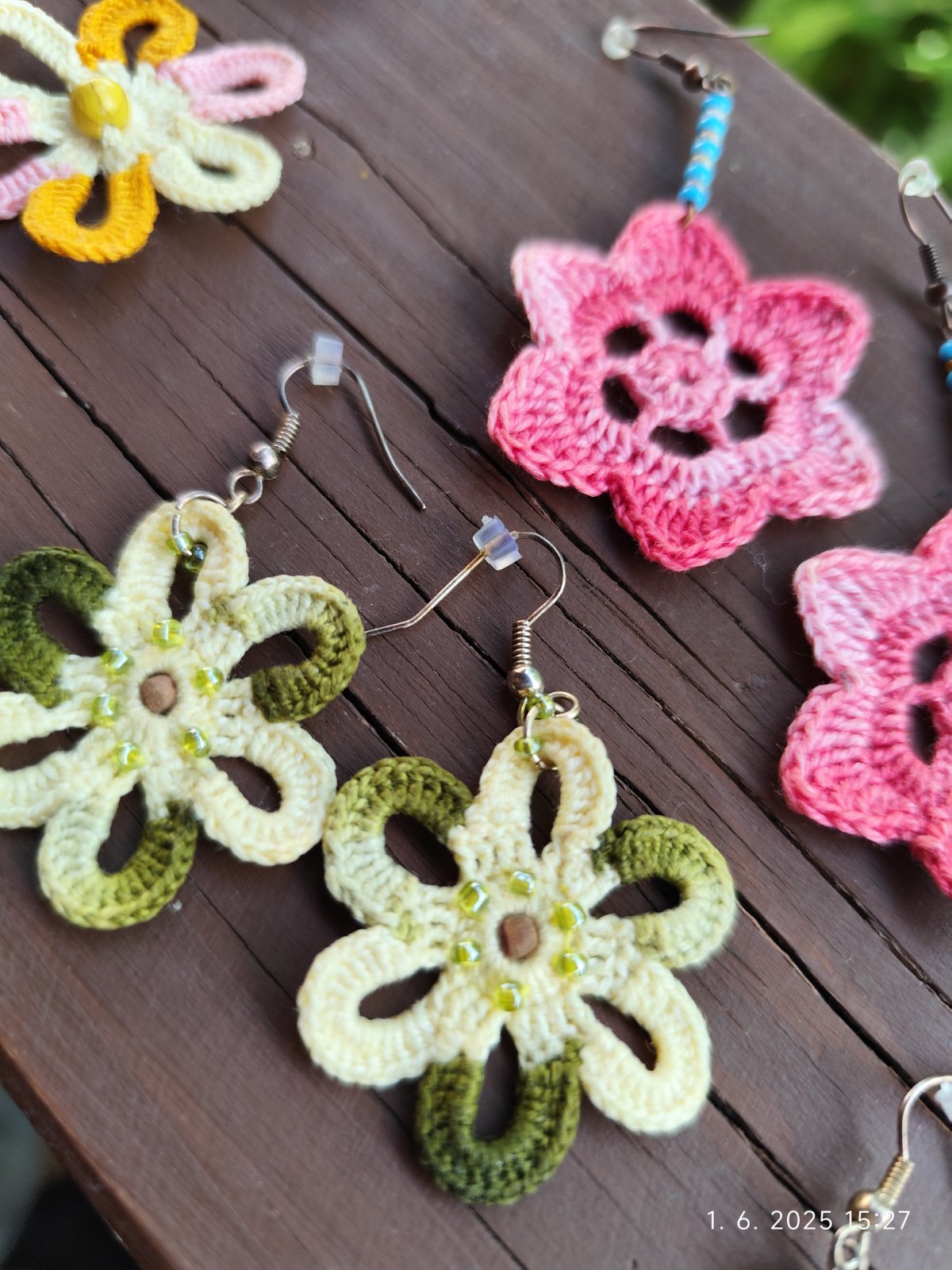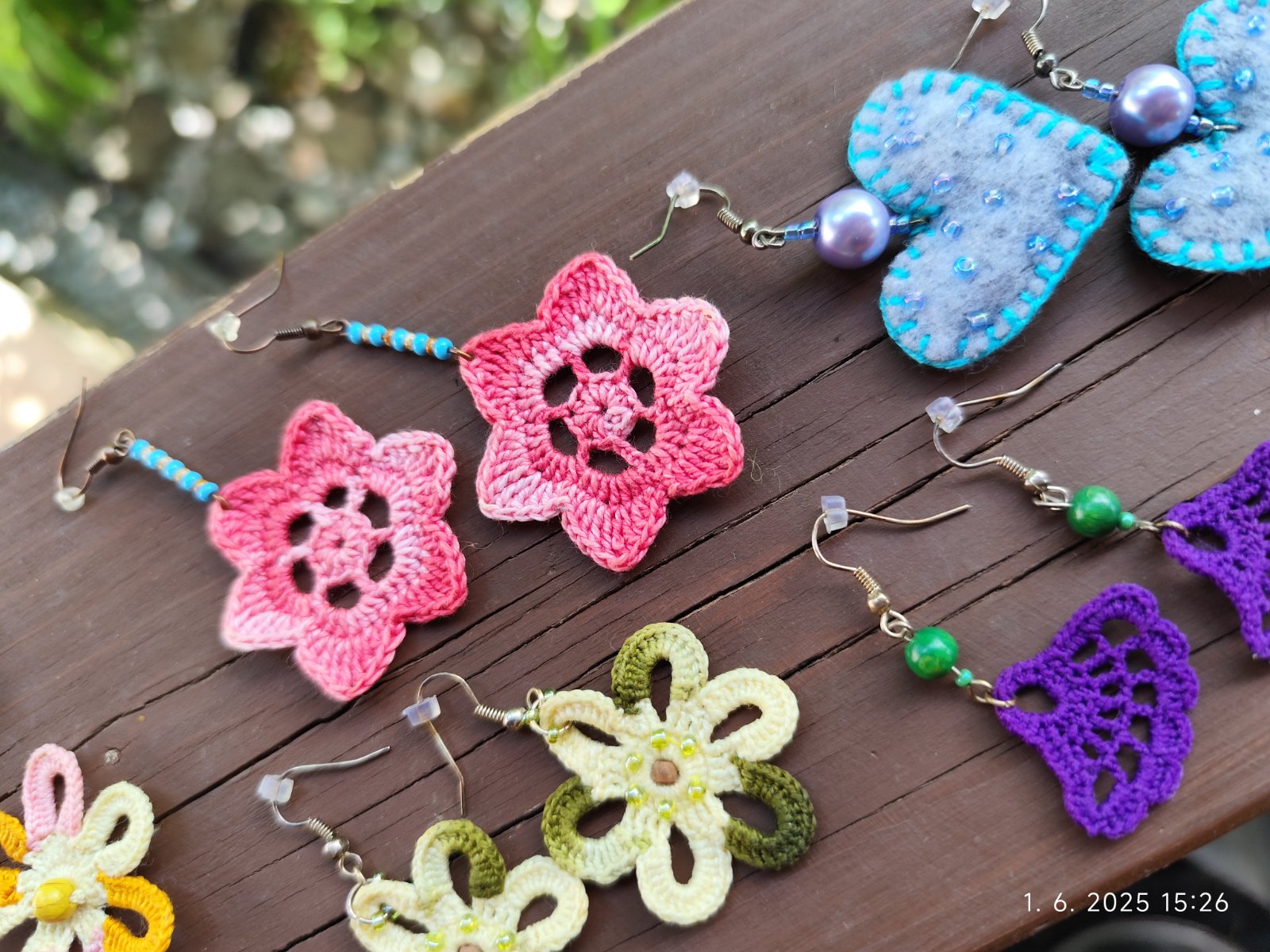 Ručne vyrábané náušnice, rôzne druhy. Zväčša háčkované, platené. Cena za kus