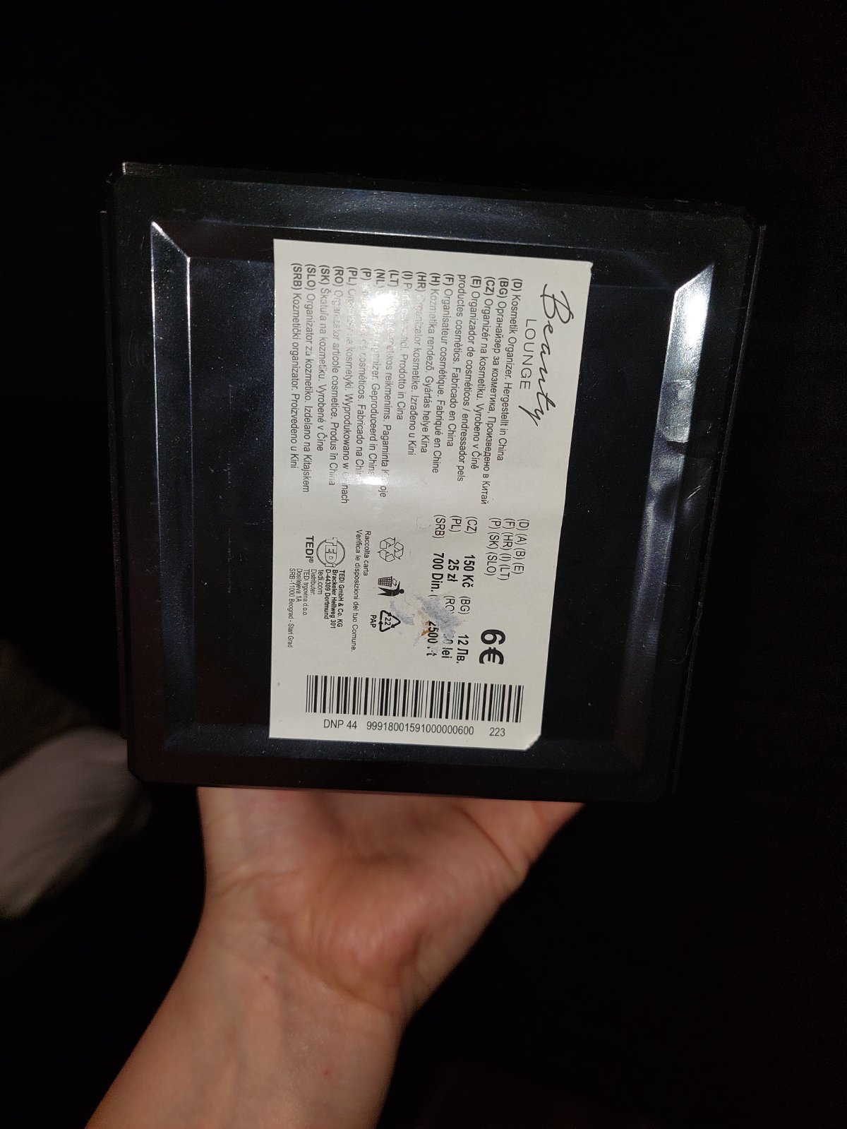 Cierna plastova sperkovnica so suflikmi.