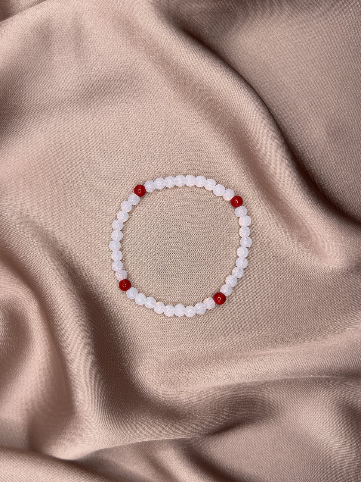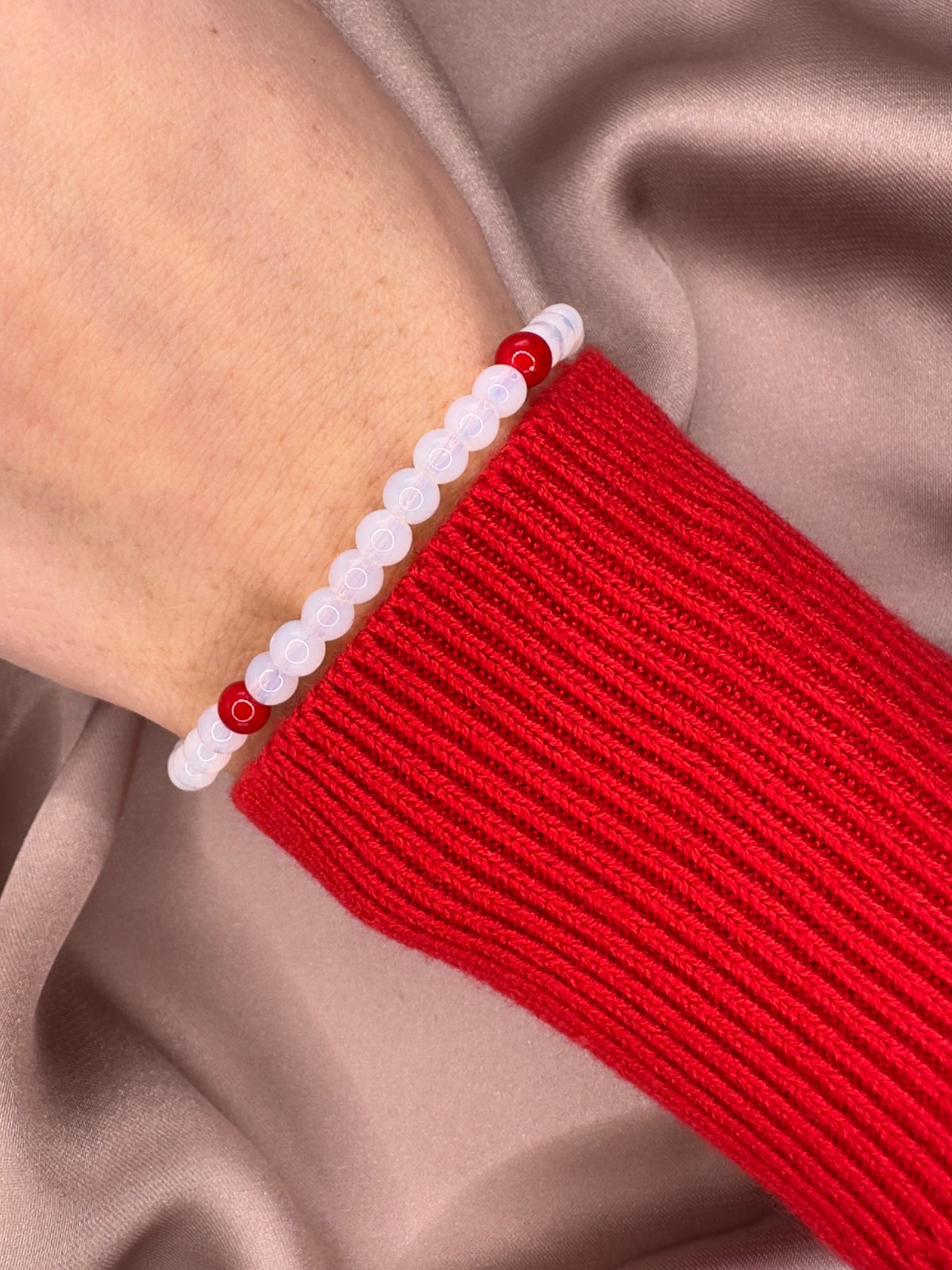 Oživte svoj štýl týmto náramkom z kombinácie jemného opalitu a energického červeného jadeitu. Tento jedinečný doplnok spája krásu, zmysel pre detail a symbolický význam kameňov.