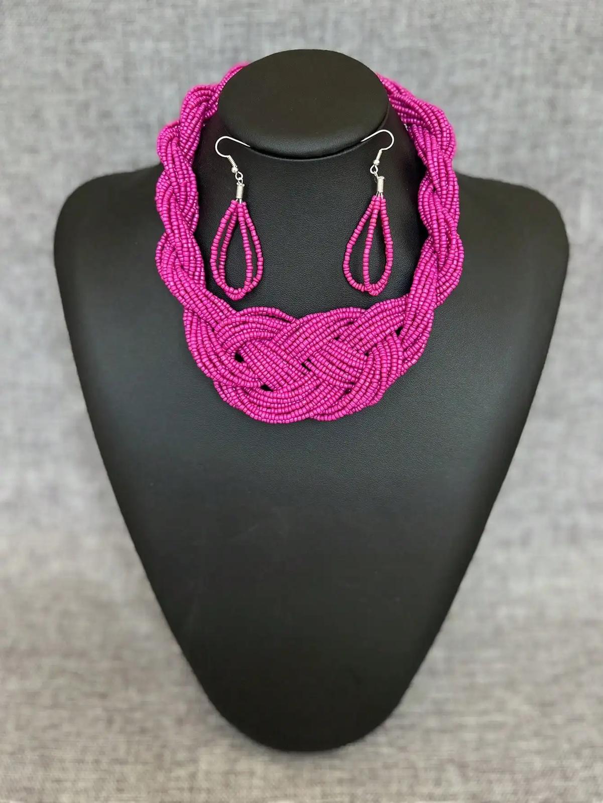 Set náhrdelníka a náramku pletený uzlovou technikou z krútenej šnúry. Klasické zapínanie na háčik. Použitý materiál: krútená šnúra, bižutérny kov. Cena bez poštovného.