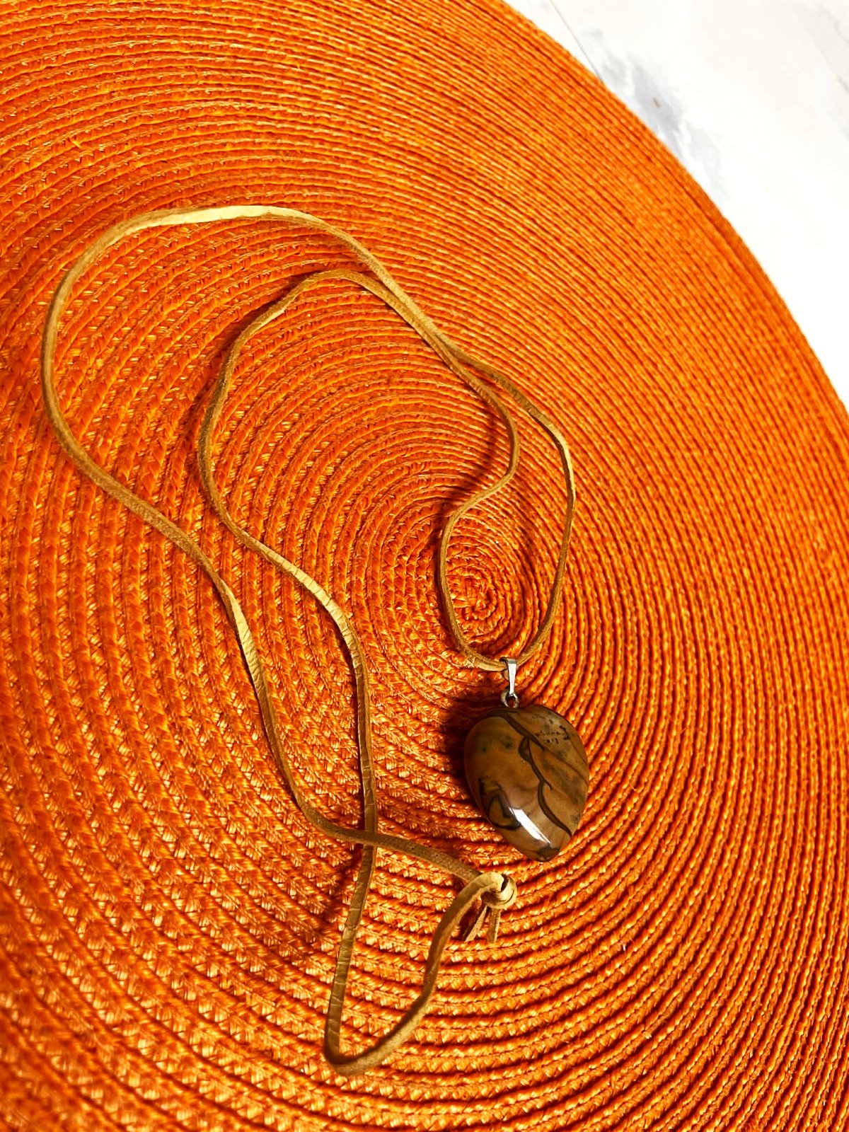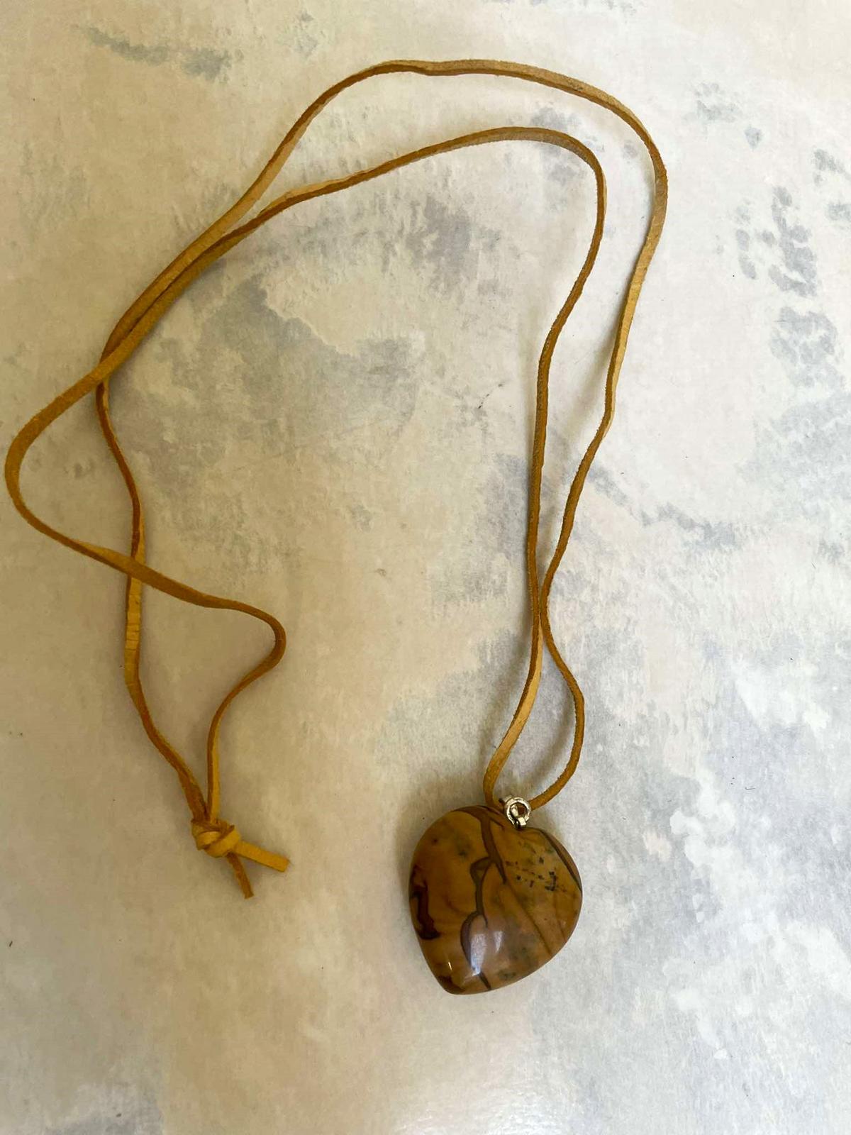 min.nosený,na koženej šnúrke,srdiečko je z naturálneho kameňa,,dlžka = 70 cm, prívesok = 3,5 x 3,5 cm