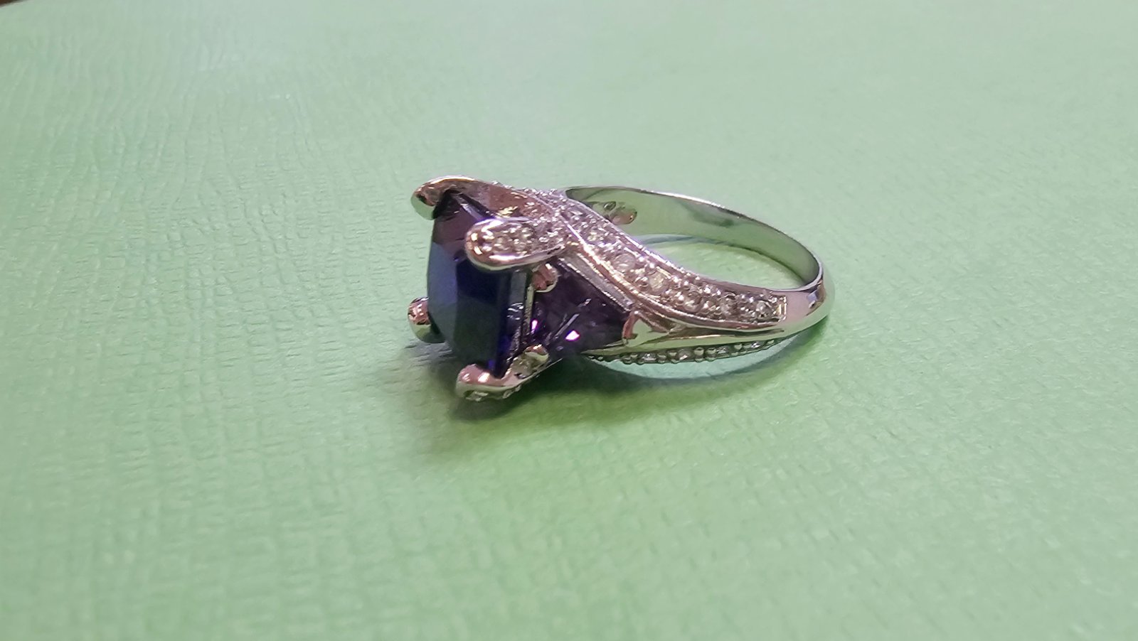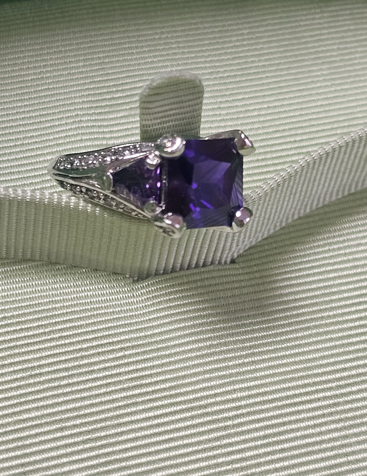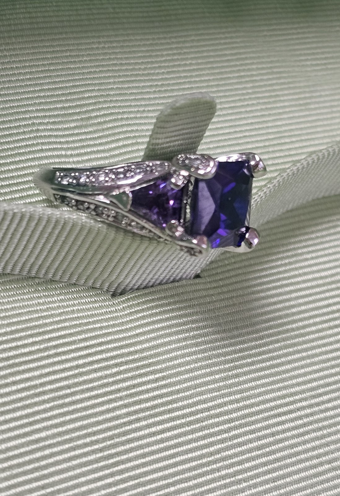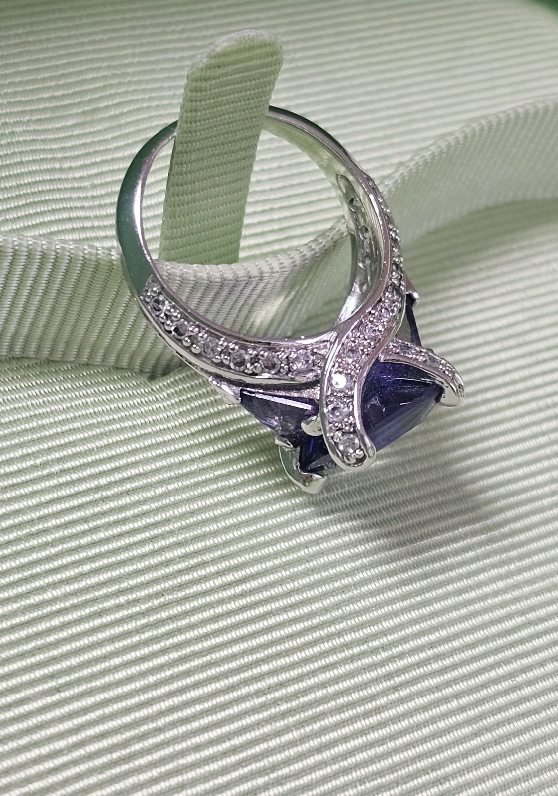Takmer nový. Rhodiovaný prsteň vsádzaný s CZ kryštálmi. Rhodiované prstene sú zo zliatiny medi a zinku, pokovanie rhodiom zlepšuje vzhľad a životnosť šperku.