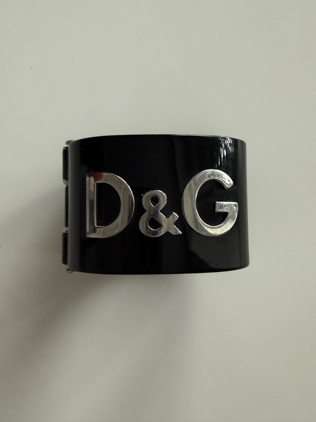 Krásny mohutný čierny náramok D&G. Velké strieborné logo. Zatváranie na klip. Bežné známky nosenia( sem-tam šmuha) bez vážneho poškodenia. Výrazný módny doplnok ku každmu outfitu🌹