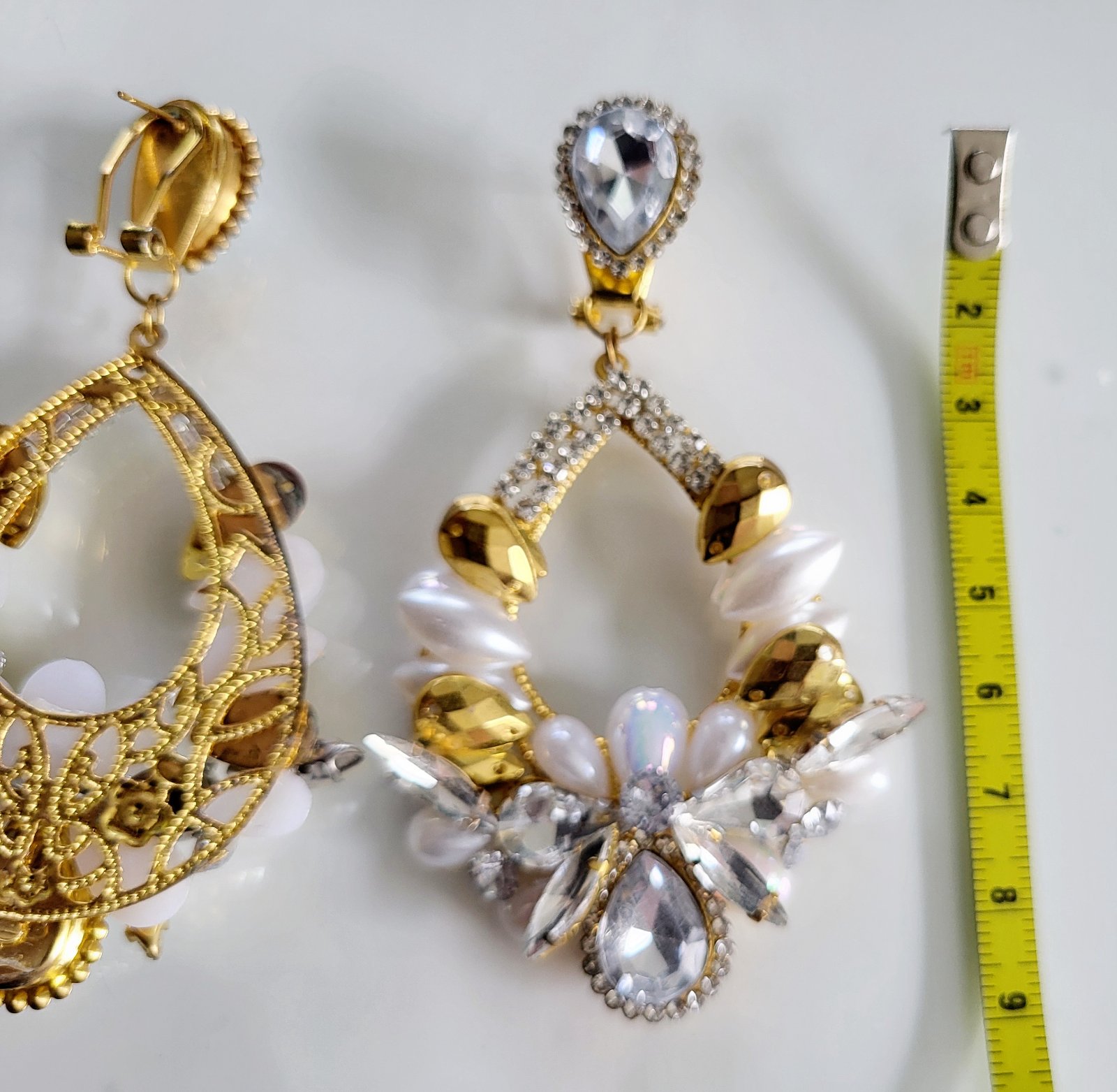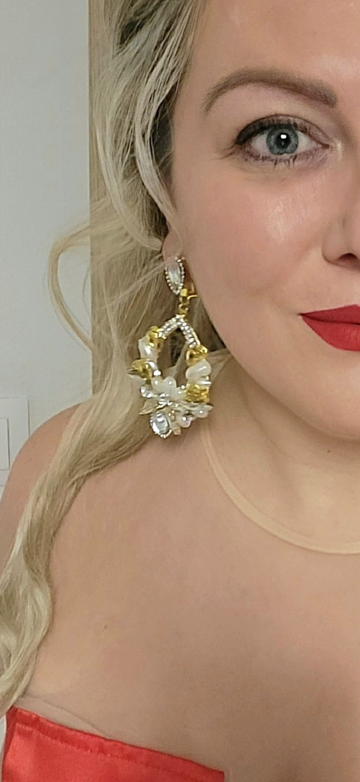 Hand made náušnice použité 1x na plese,vyrobené 01/25. Dĺžka 9cm šírka 5 cm.