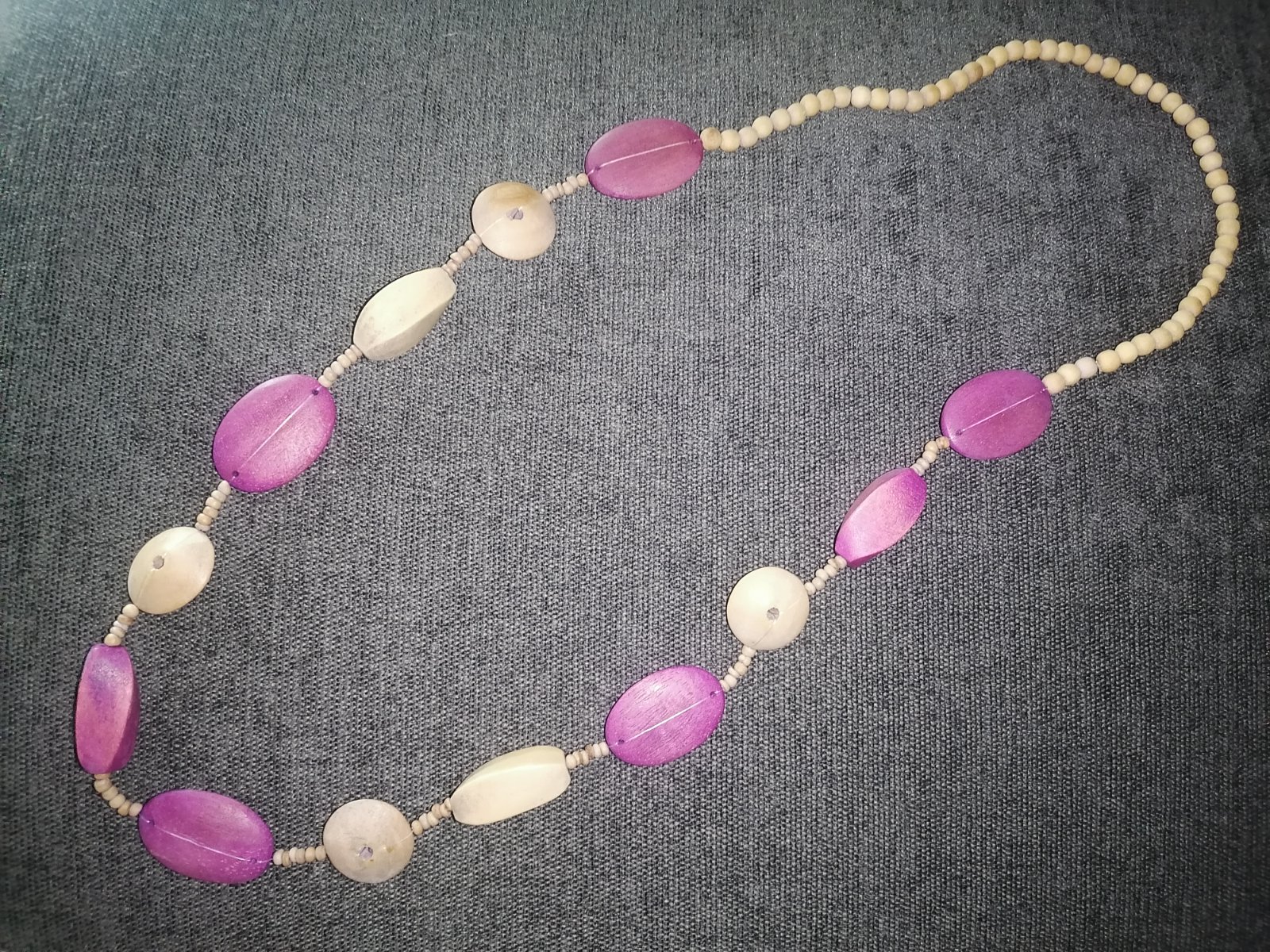 Predám drevený náhrdelník s fialovými a prírodnými koralkami. Cena 3 Eur plus poštovné. Osobný odber v BA. Pošlem poštou, al. Packetou.