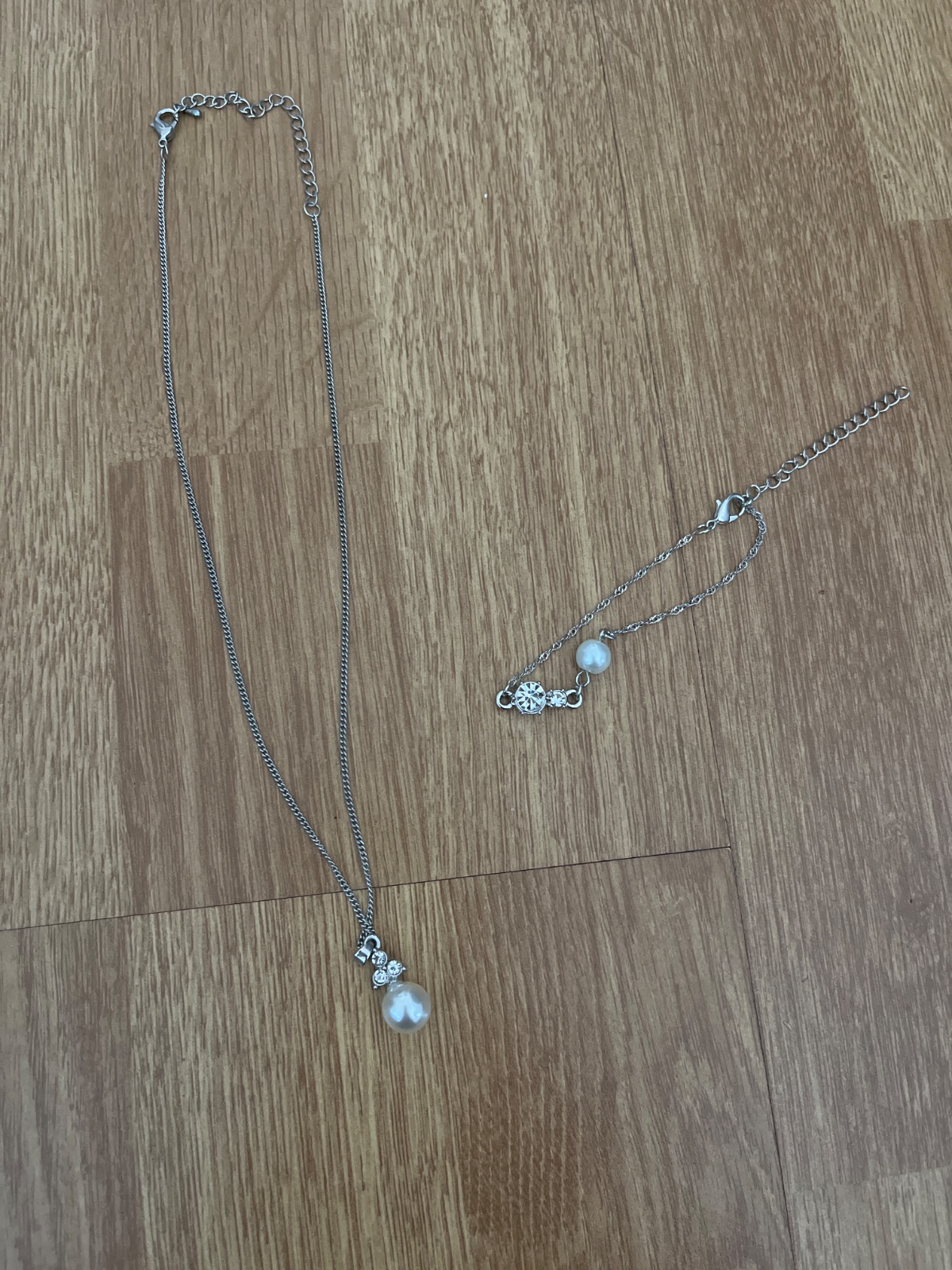 Bez poskodenia, nevynosím, striebornny naramok a náhrdelnik s perlou