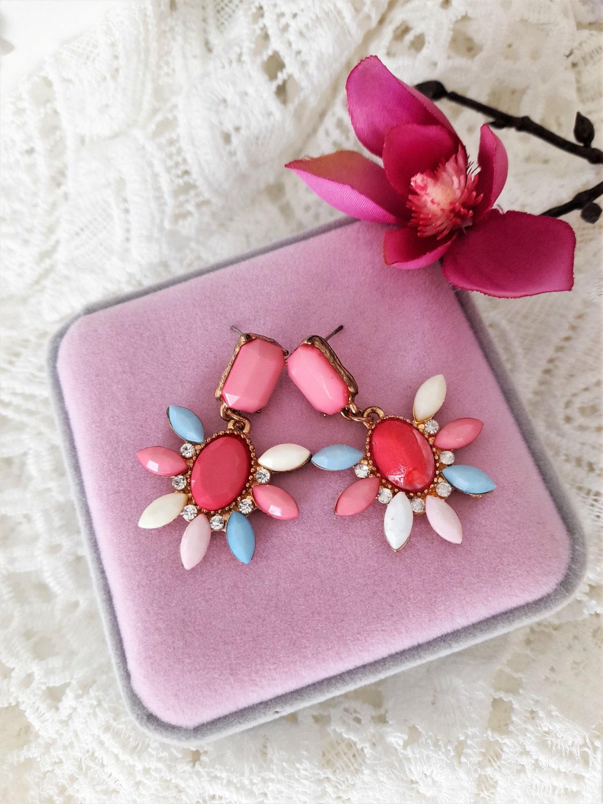nevymieňam!!nosené asi 2 x,materiál bižutéria,výška 4,5cm,šírka 3cm,na jednej náuśnici je ten stredný kameń veľký,trośka dobiela,to od novoty..pekné multicolor..kuk aj na iné moje inzeráty