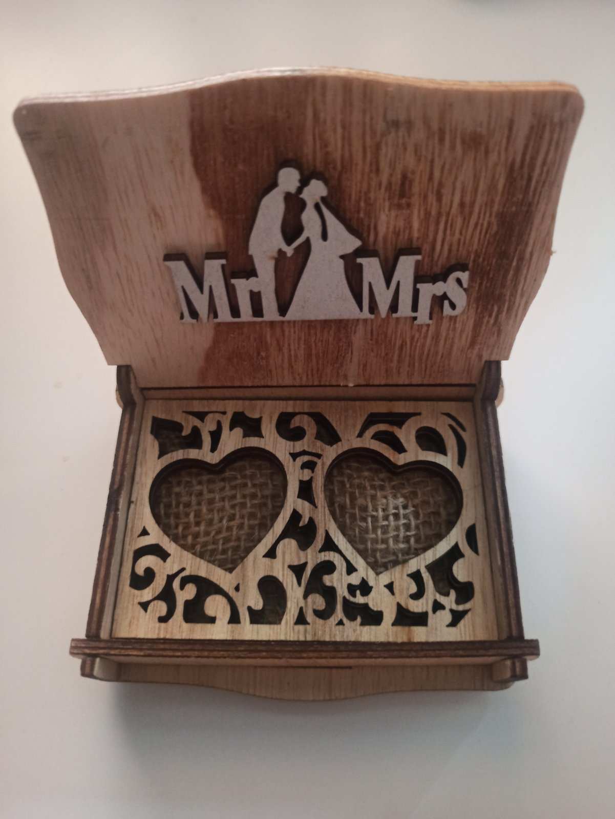 Krabička - šperkovnica na obrùčky z agatoveho dreva,motív vypaľovany laserom.Vintage štýl