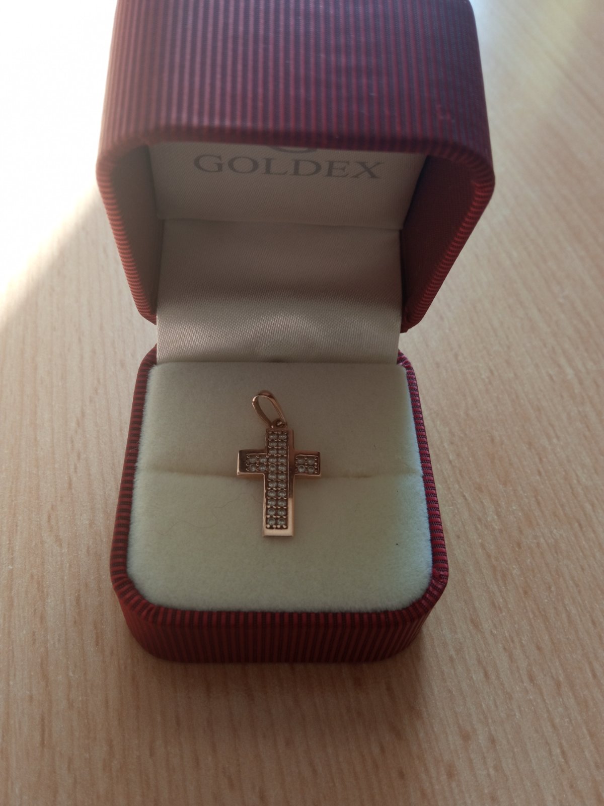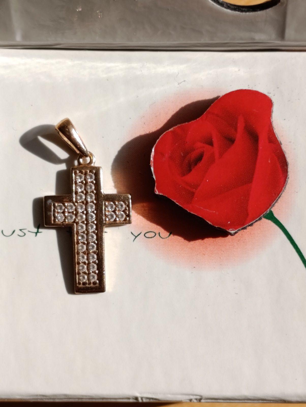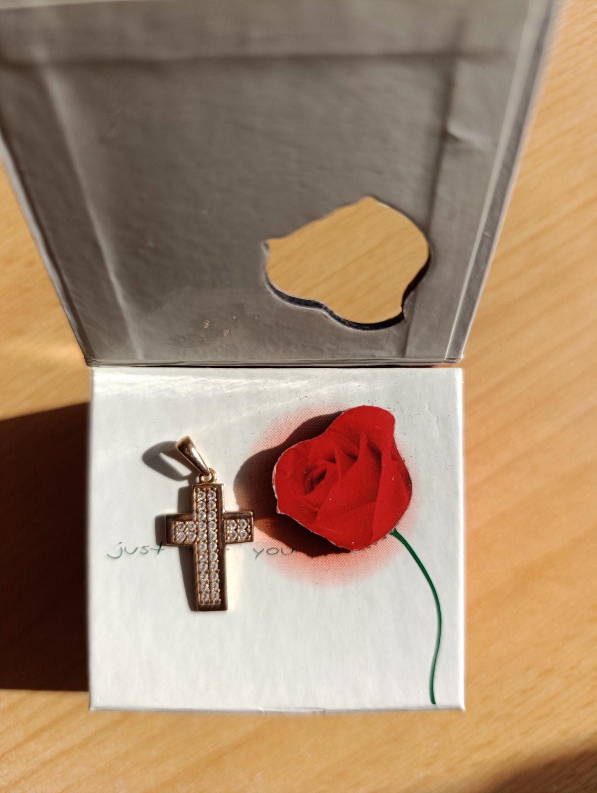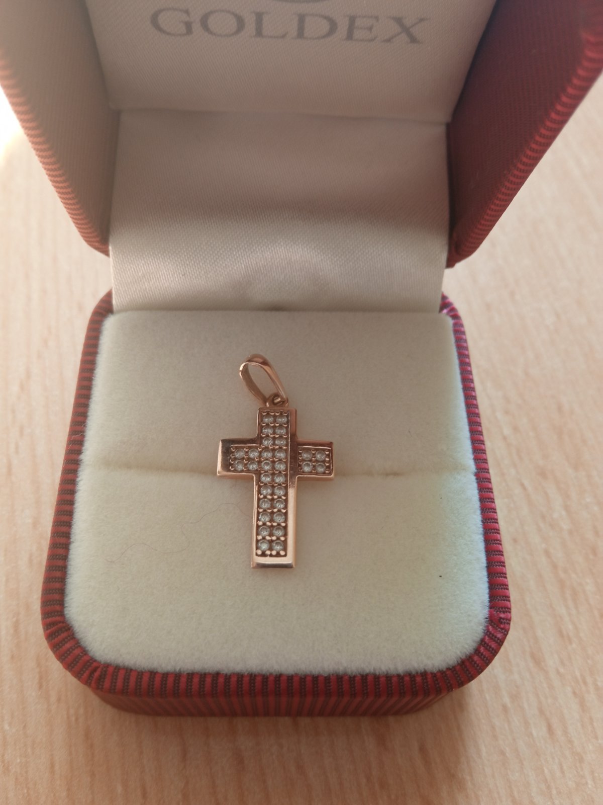Ružové 14 karatove zlato,so zirkónmi,váha 1,54 gr, rozmery : 2 cm dĺžka, okrem závesného uška -to má 6 mm,čiže spolu to má 2,6 cm, širka 1,2 cm