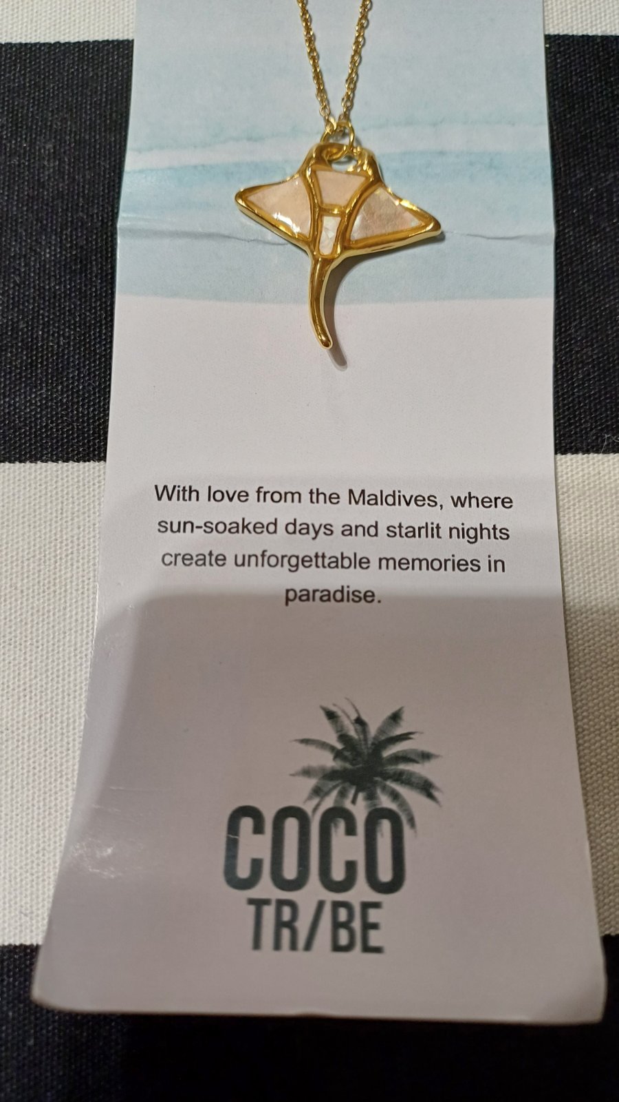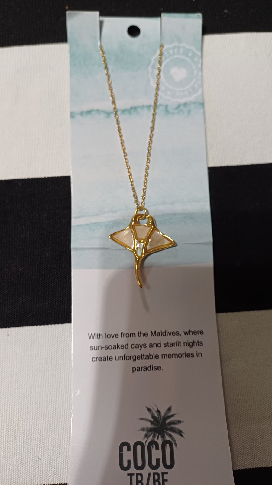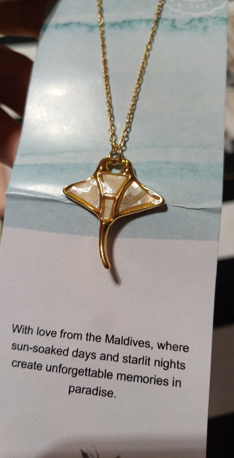 Krásny jedinečný náhrdelník s Mantou v perleťovom prevedení, dovezený z Maldív. Nový. Vhodný ako darček. 40 - 45 cm. Vhodný aj na kúpanie sa vo vode.