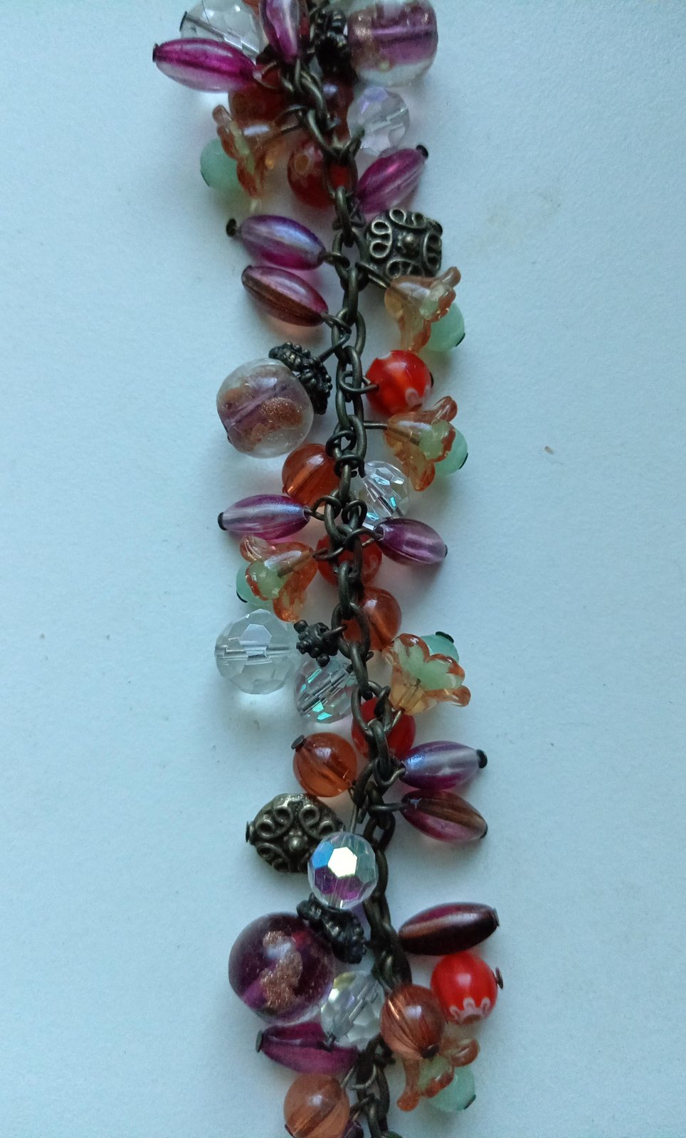 Krásny náramok zo sklenených korálok v kombinácii s kovom.