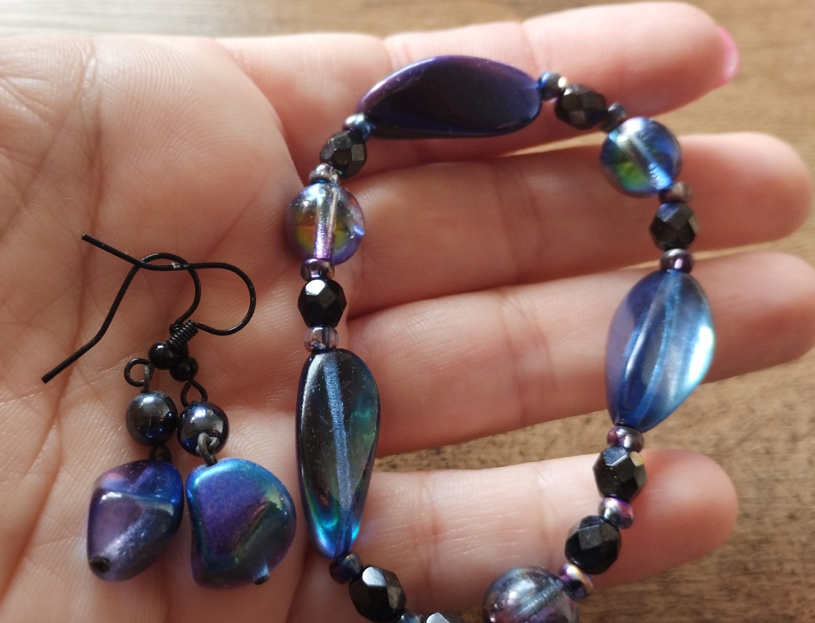 Raz použité. Dámsky náramok zo sklenených kameňov. Dĺzka 19 cm.