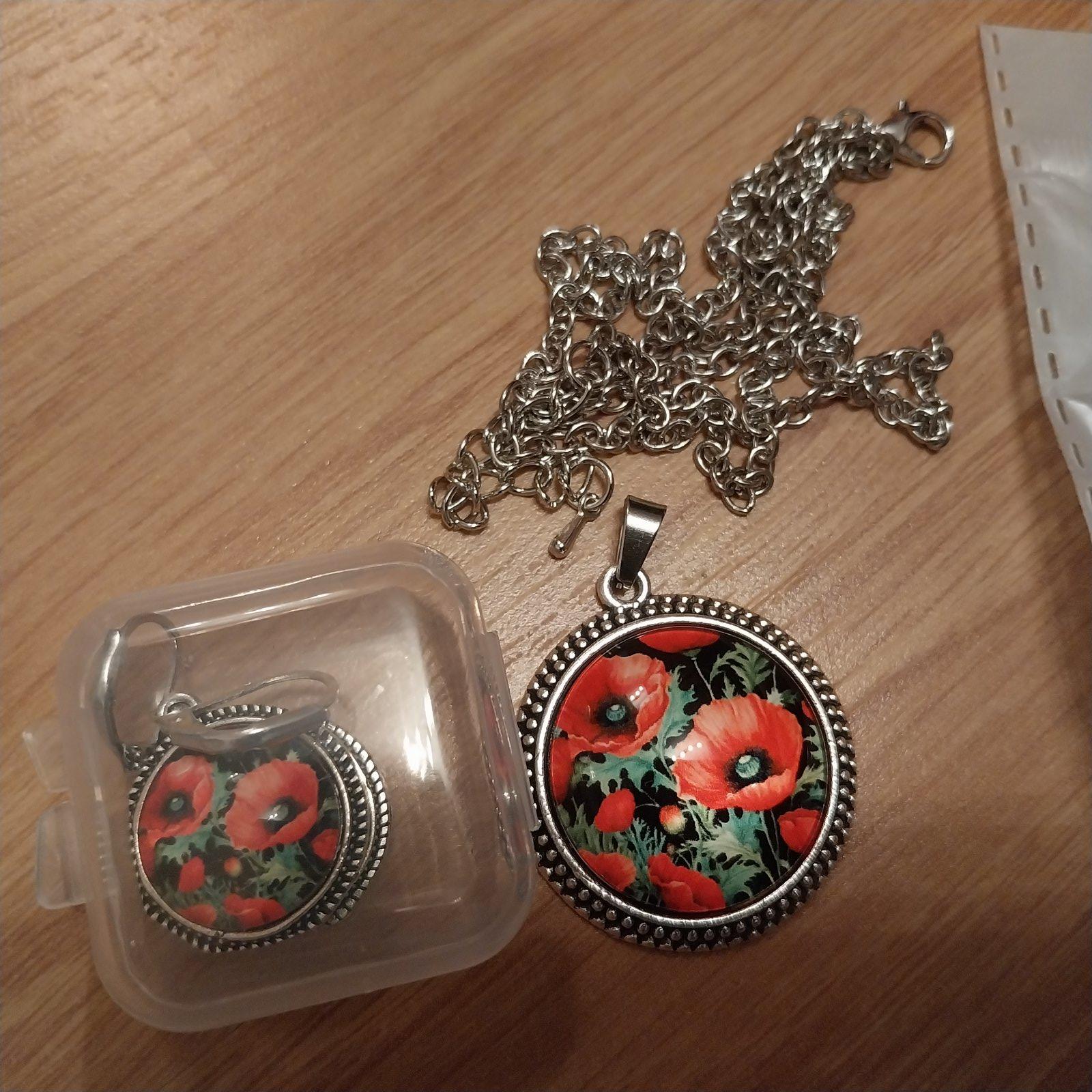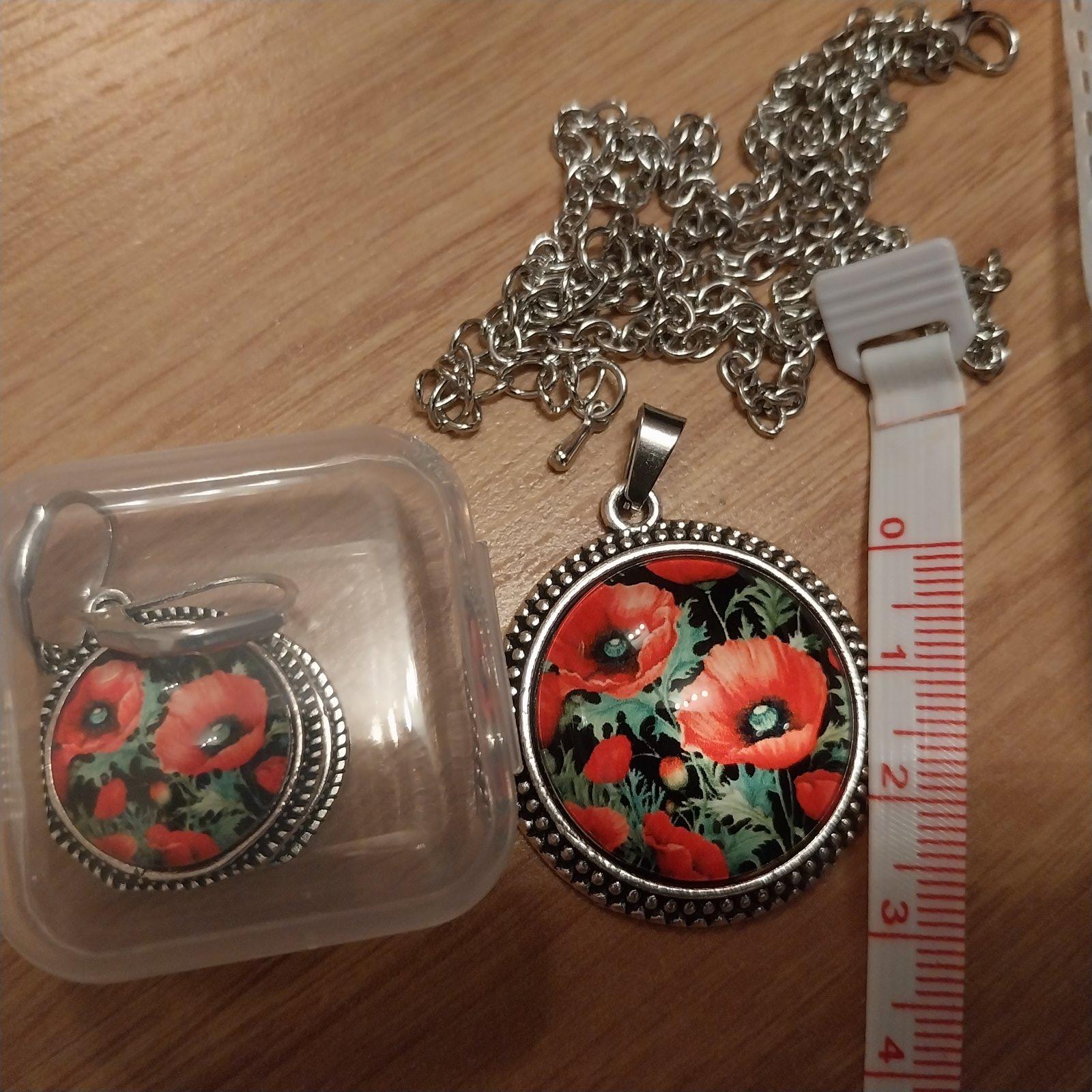 Sada nausnice + retiazka s priveskom Cerveny mak