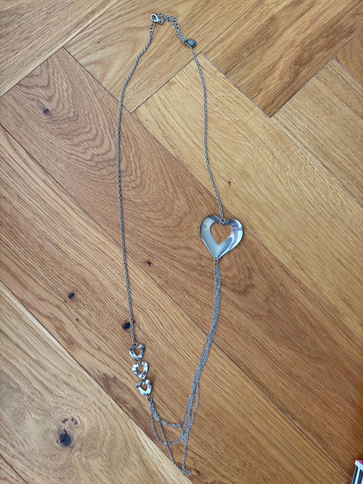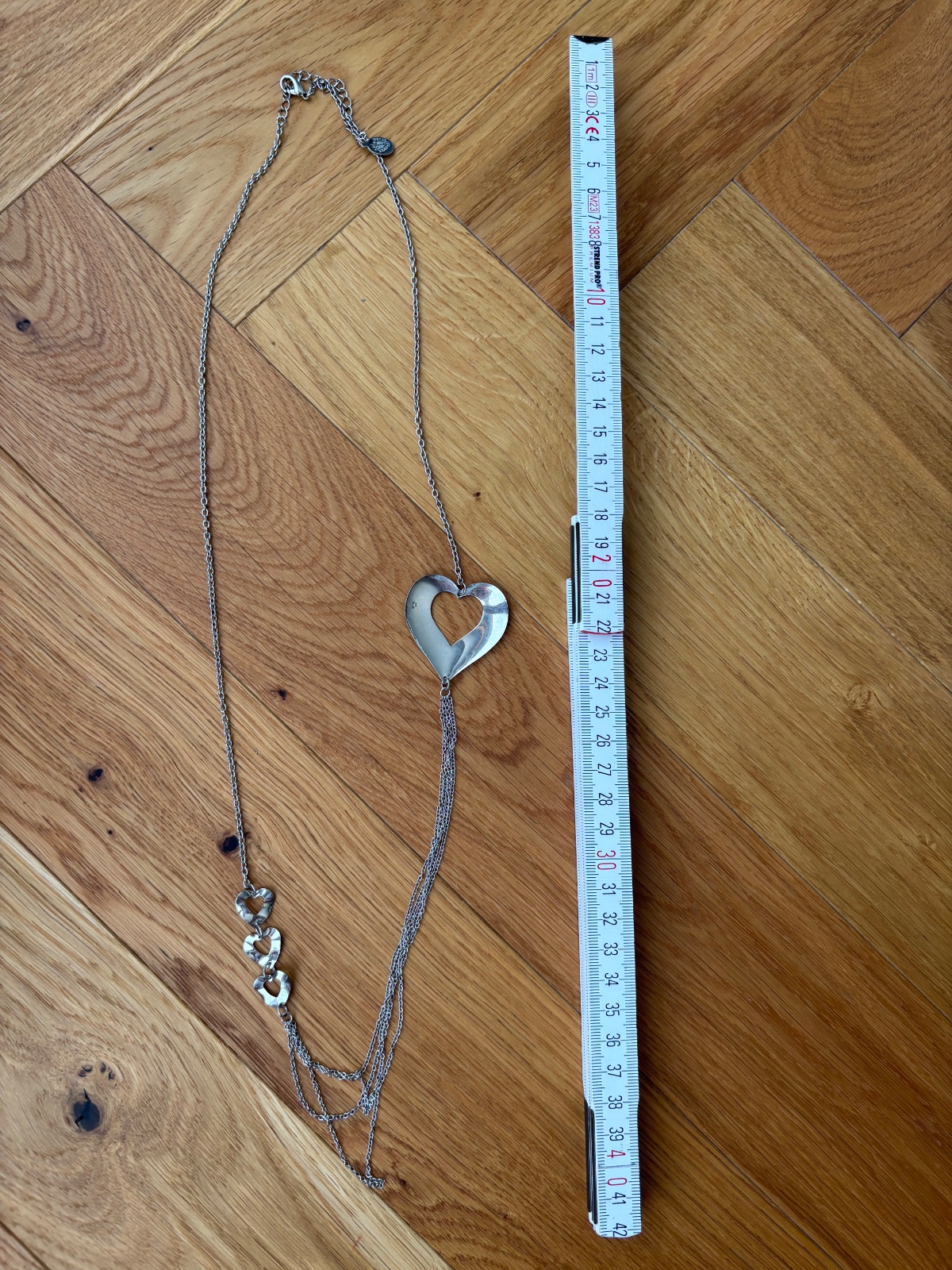 Raz použitý strieborný náhrdelník, vo výbornom stave, neopadané kamienky Dĺžka retiazky 44cm (merané po odopnutí) Výška srdiečka je 2,2 cm a šírka(hore v najširšej časti) je 2,3 cm Cena 30 e + pošt...
