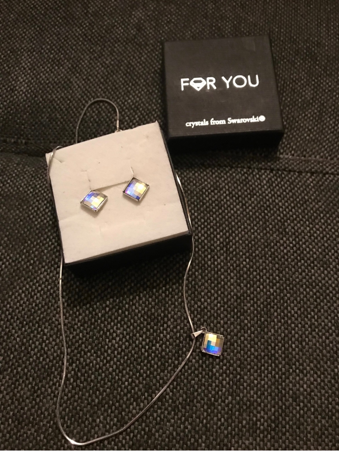 Noseny, dobry stav bez poskodeni. Vyraznejsi sperk, kupovany v zlatnictve- retiazka- cirurgicka ocel, krize su swarovski kristal. Na svetle krasne menia farebne odlesky. Pc 70