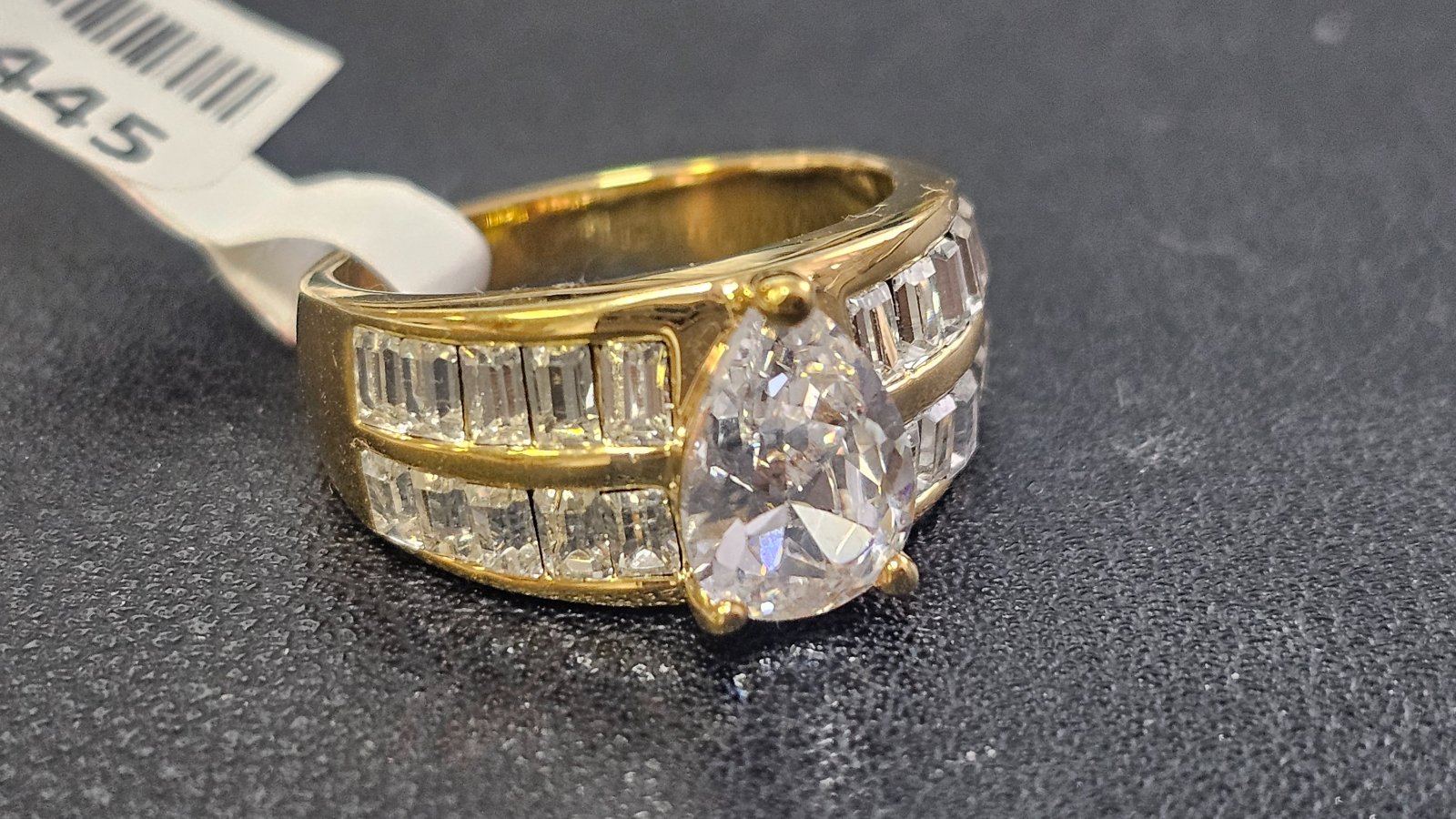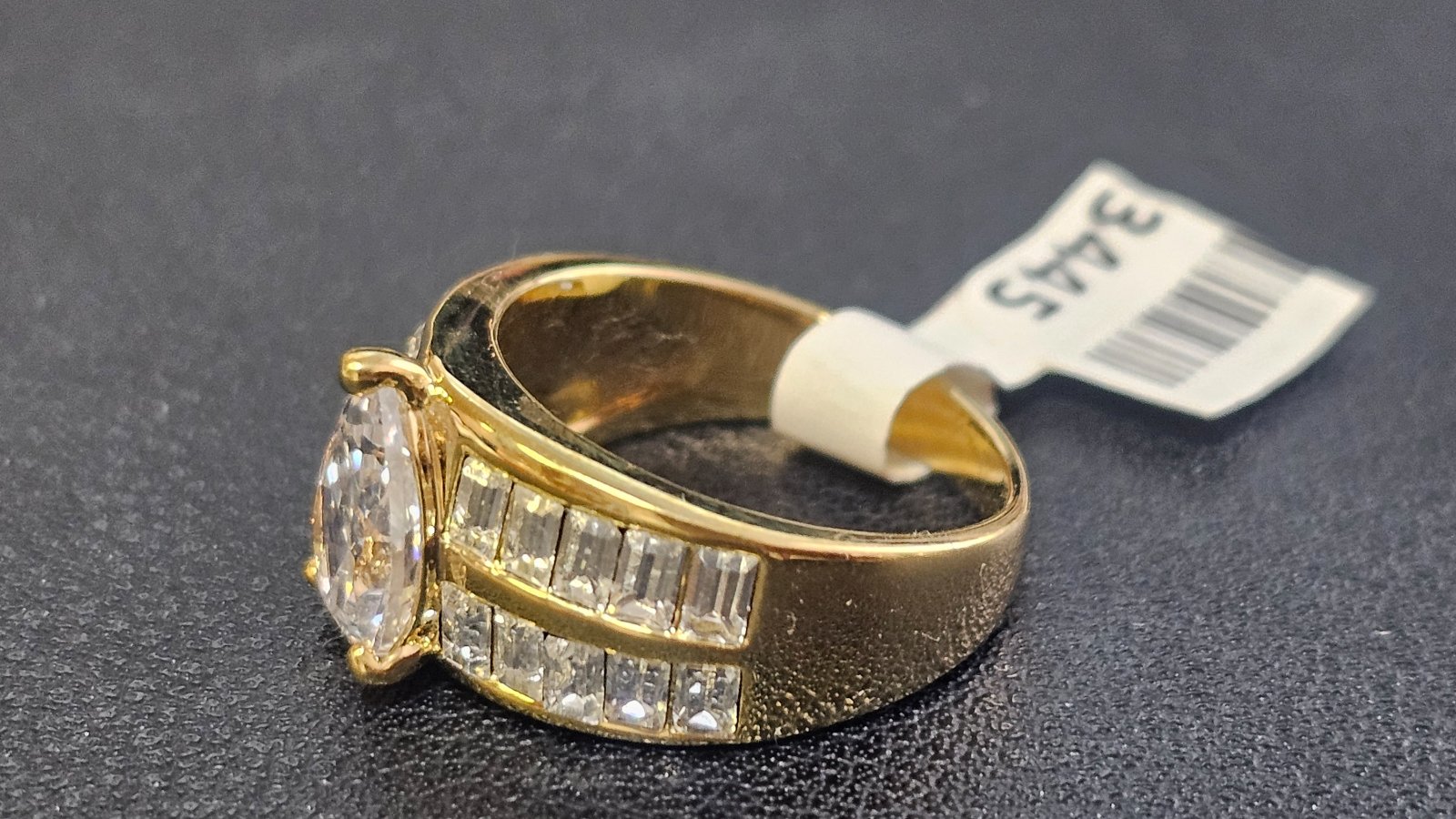 Prsteň je pokovaný rhodiom, pozlátený a vsádzaný s CZ kryštálmi . Pokovanie rhodiom zlepšuje vzhľad a životnosť šperku. Rhodium je kov zo skupiny platinových kovov.