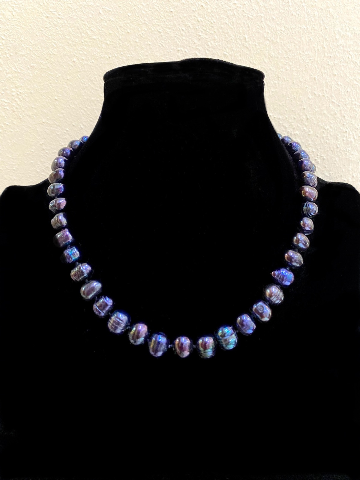 Elegantný náhrdelník z tmavých nepravidelných perál s jemným odleskom v rôznych farbáh.Vhodný na slávnostné aj bežné príležitosti.