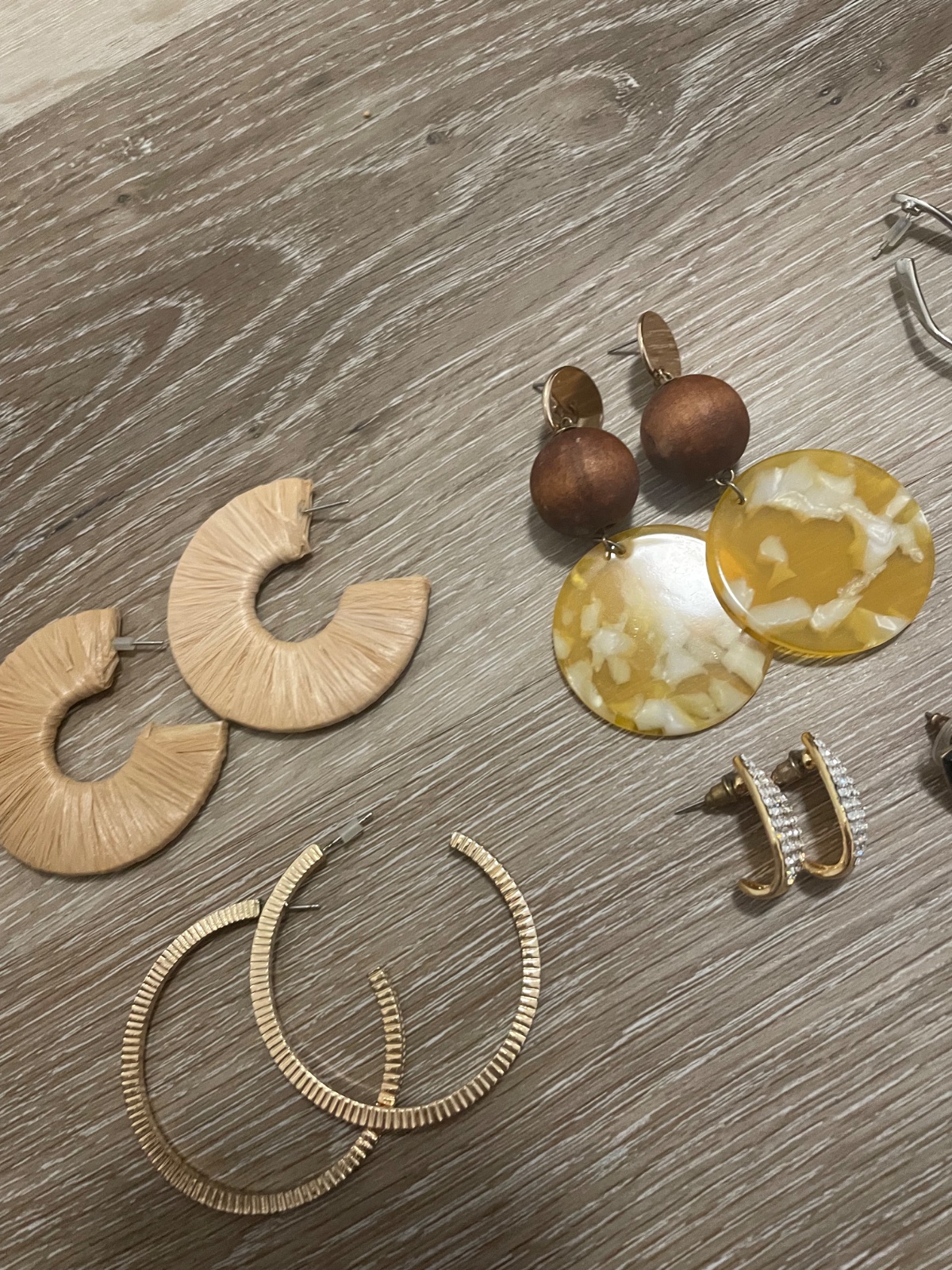 Krásne náušničky 1. Hadíkove náušnice s kamienkami-2€ 2. Krémovozlaté náušničky, krásne, ručná výroba! 6€ Všetky 2 páry náušníc spolu 6€