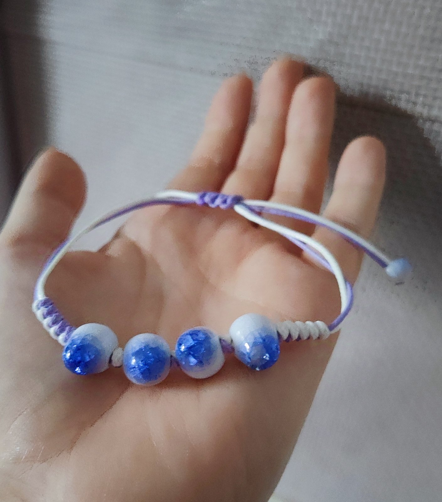 Predám hand made náramok vyrobený mojou dcérou. Náramok má obvod cca 16 cm. + poštovné.