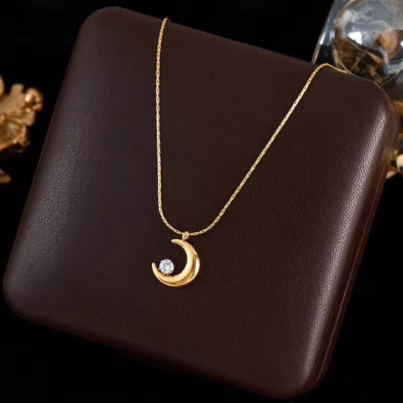 pozlátená chirurgická oceľ, dĺžka retiazky 45cm, prívesok mesiac so zirkónom