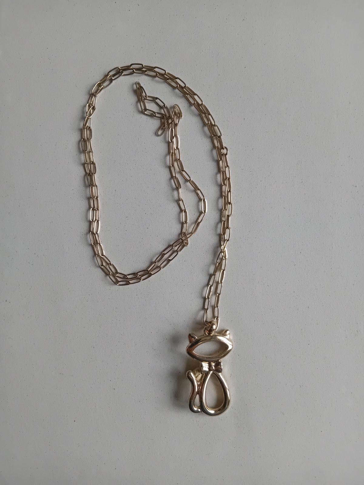 Nenosený! Krásny prívesok mačky na dlhej retiazke. Farebnosť zlata, skôr jemne ružového. Dĺžka retiazky je 79 cm. Prívesok má 4 cm.