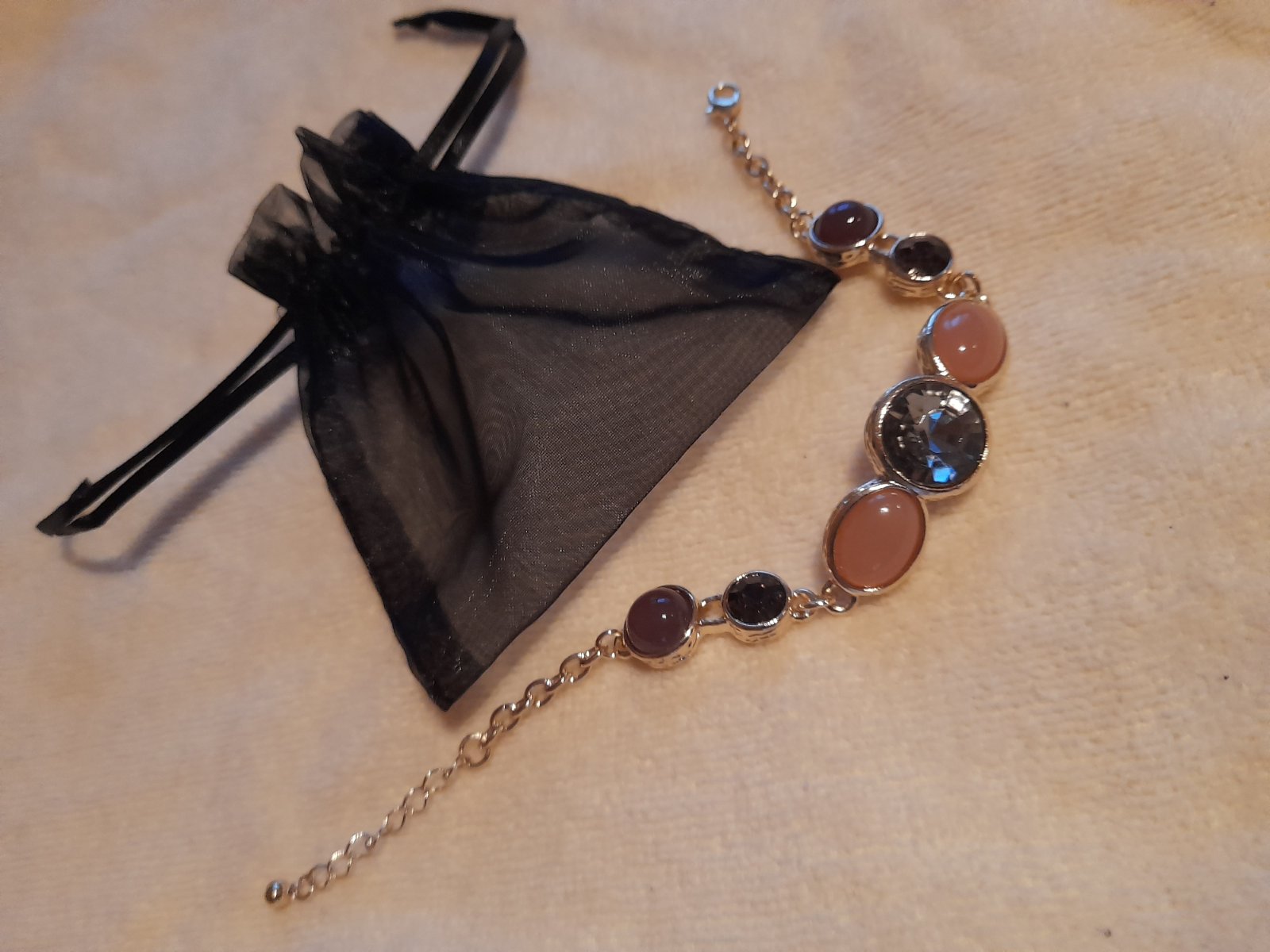 Krásny elegantný náramok na zlatej retiazke. V čiernom vrecúšku, dĺžka 18,3 +3,5 cm možné predĺženie .