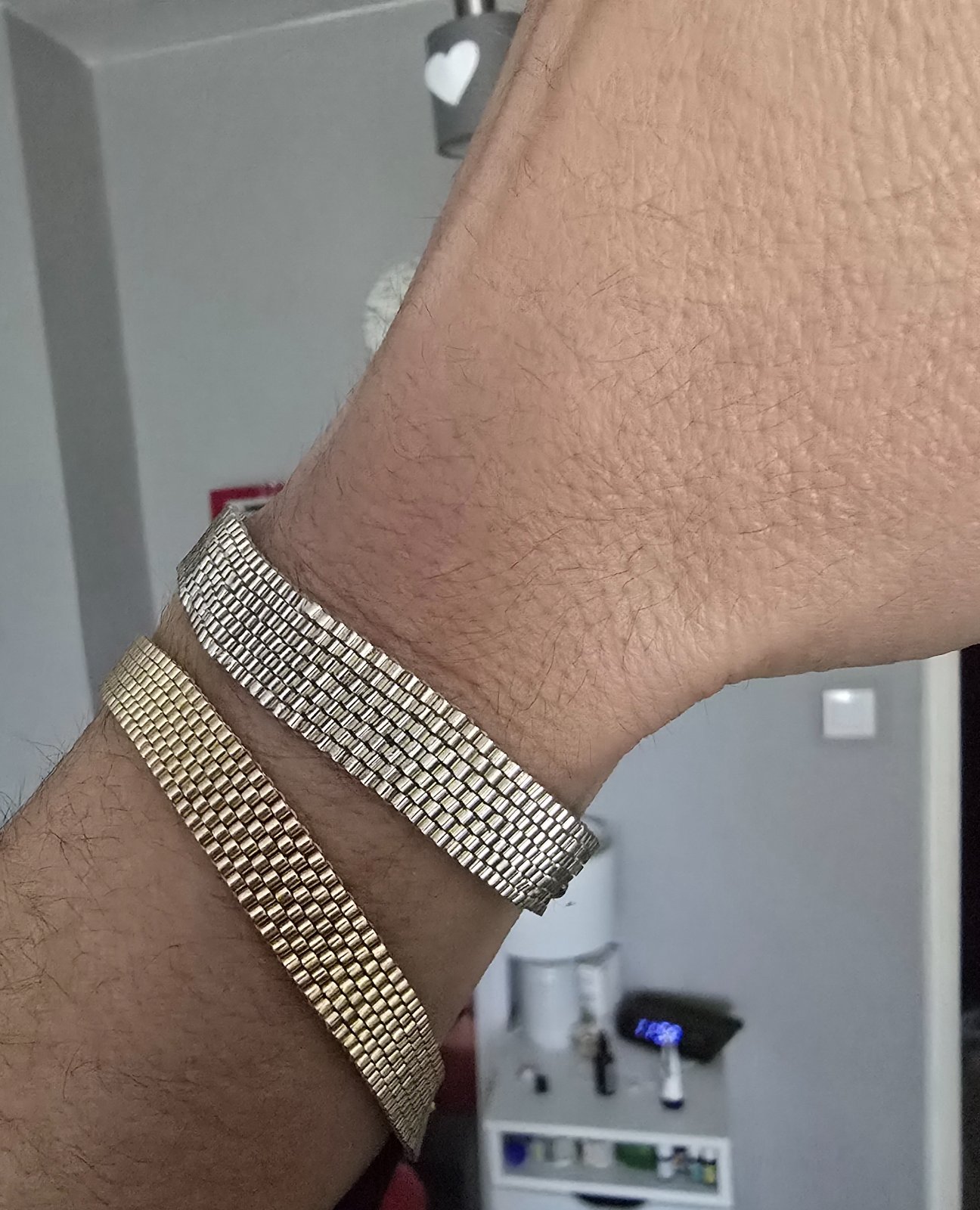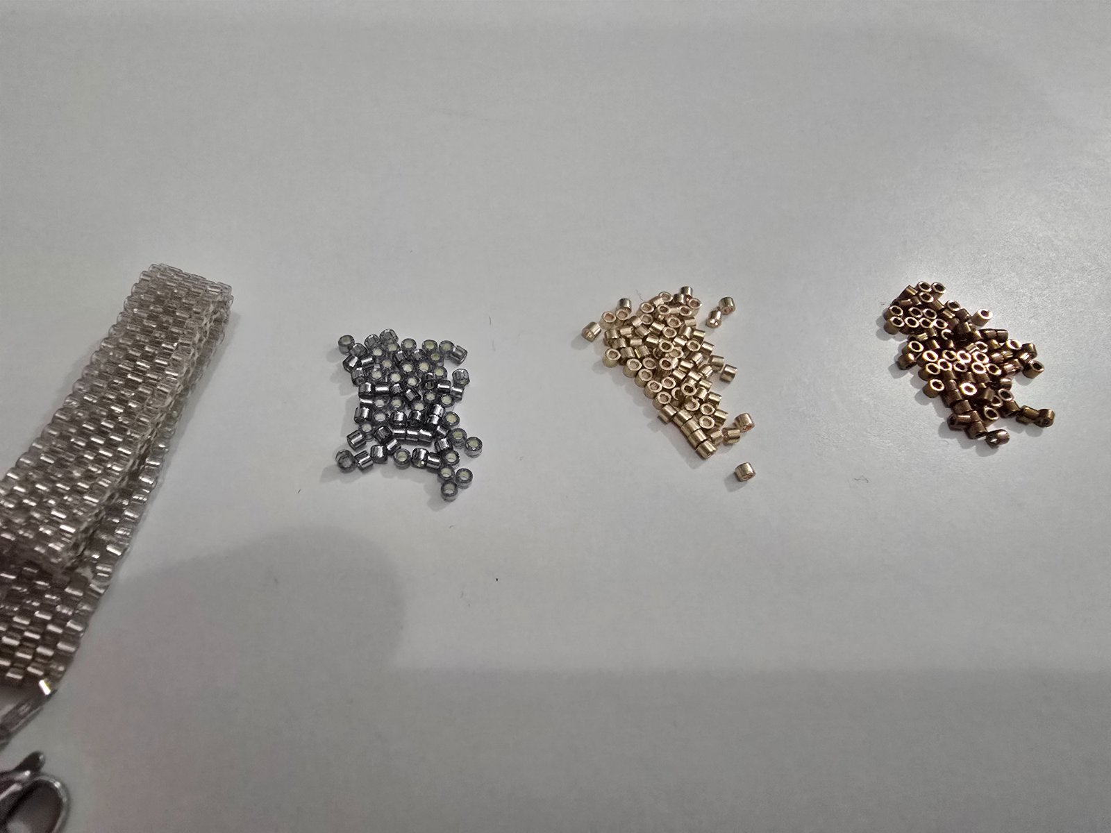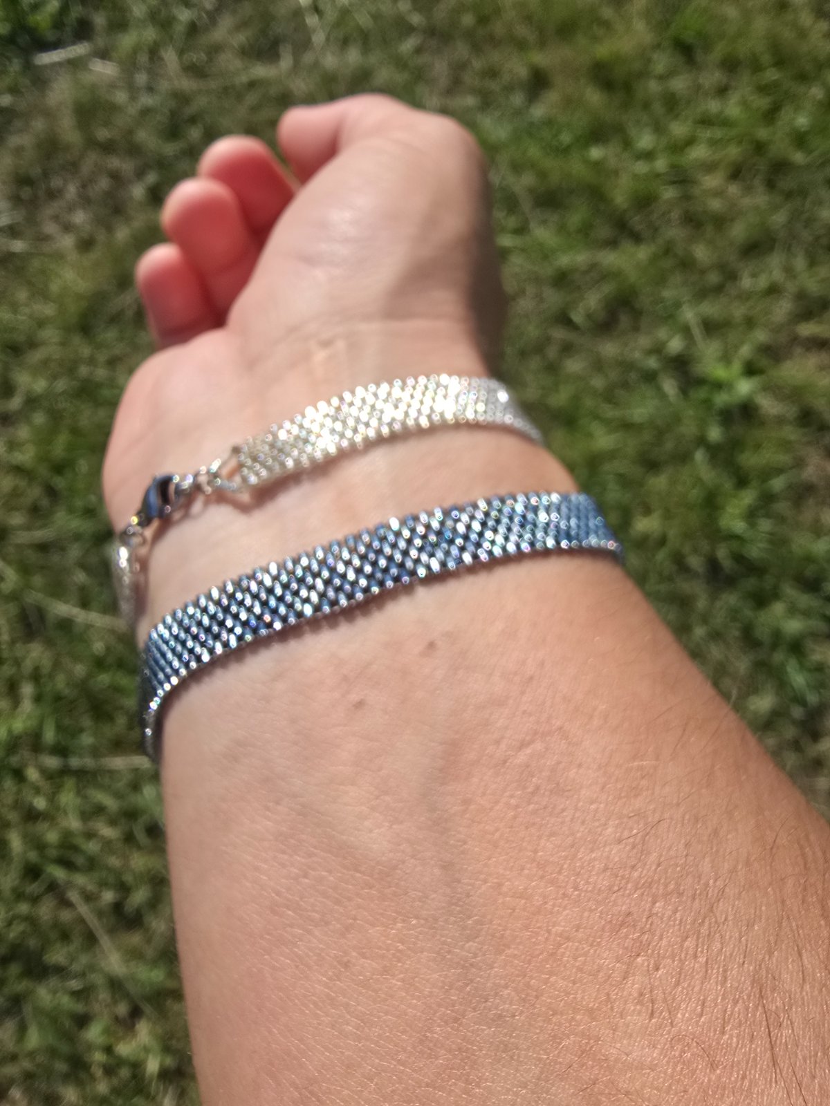 Lahunky trblietavy naramok, nazivo vyzera naozaj pekne, clovek by nepovedal, ze je usity z koralok. Moze byt strieborny, ocelovy, zlaty, medeny...alebo podla zelania. Na vyber taktiez viac druhov zapinani, vsetko nerezova ocel. Pozrite aj dalsie naramky v mojej ponuke 😉