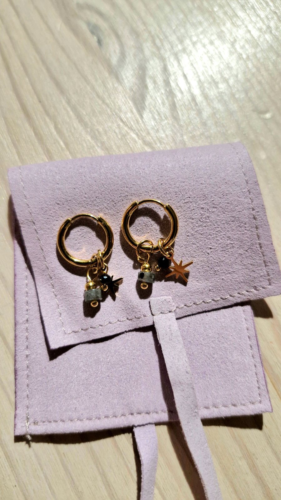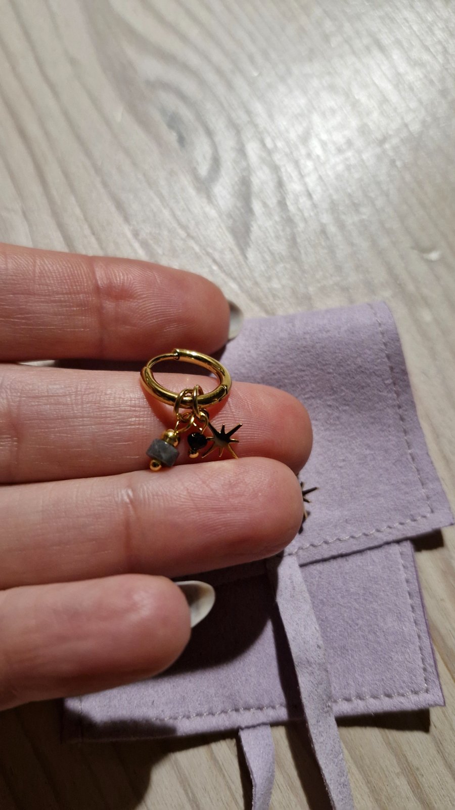 Material uvadzana pozlatena chirurgicka ocel. Priemer vonkajsi 1,4 cm. Krasne vyzeraju v uchu. Dodavane v ochrannom puzdierku