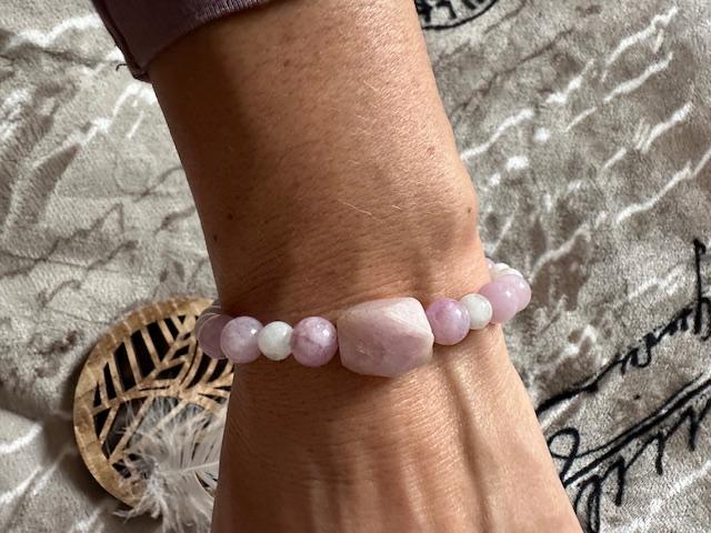 Predám nový ručne vyrobený náramok Mesačný kameň + Kunzit.