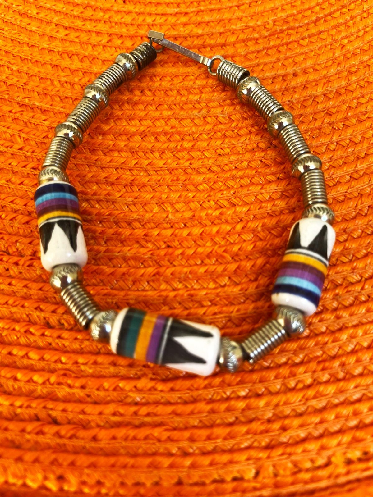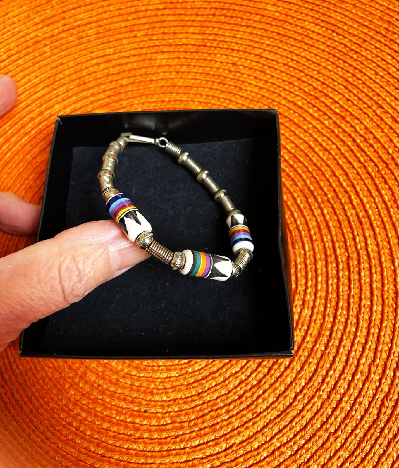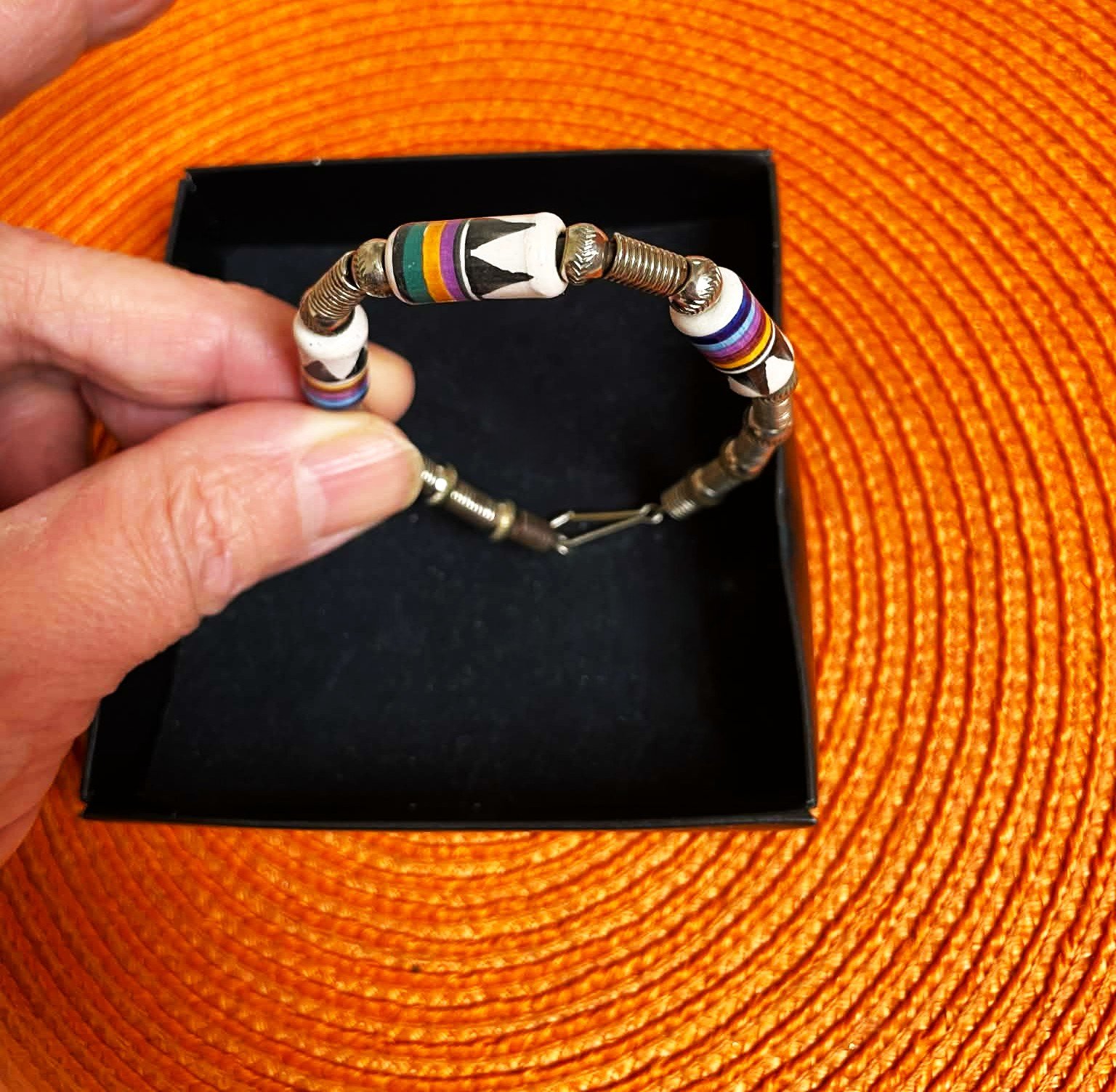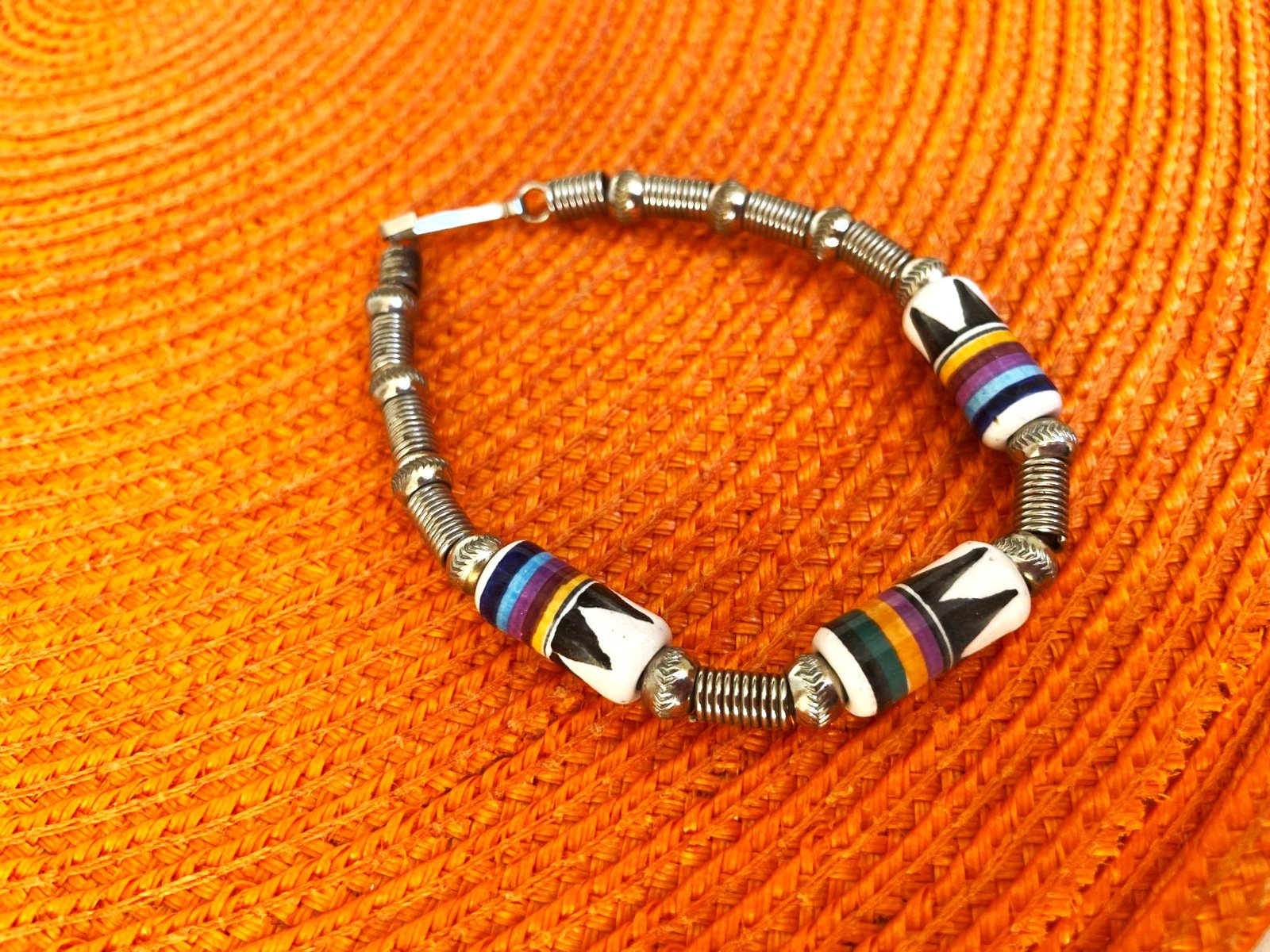 min.nosený krásny unisex náramok,zaujímavý - s keramickými korálkami,výborné zapínanie,precízne vypracovanie
