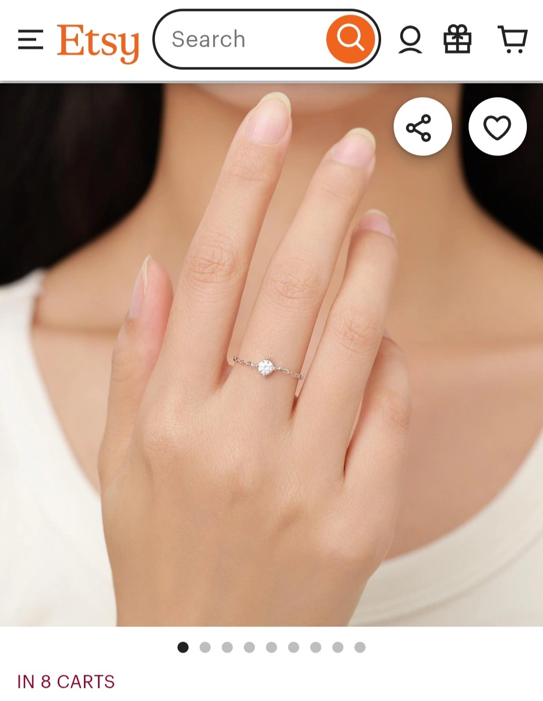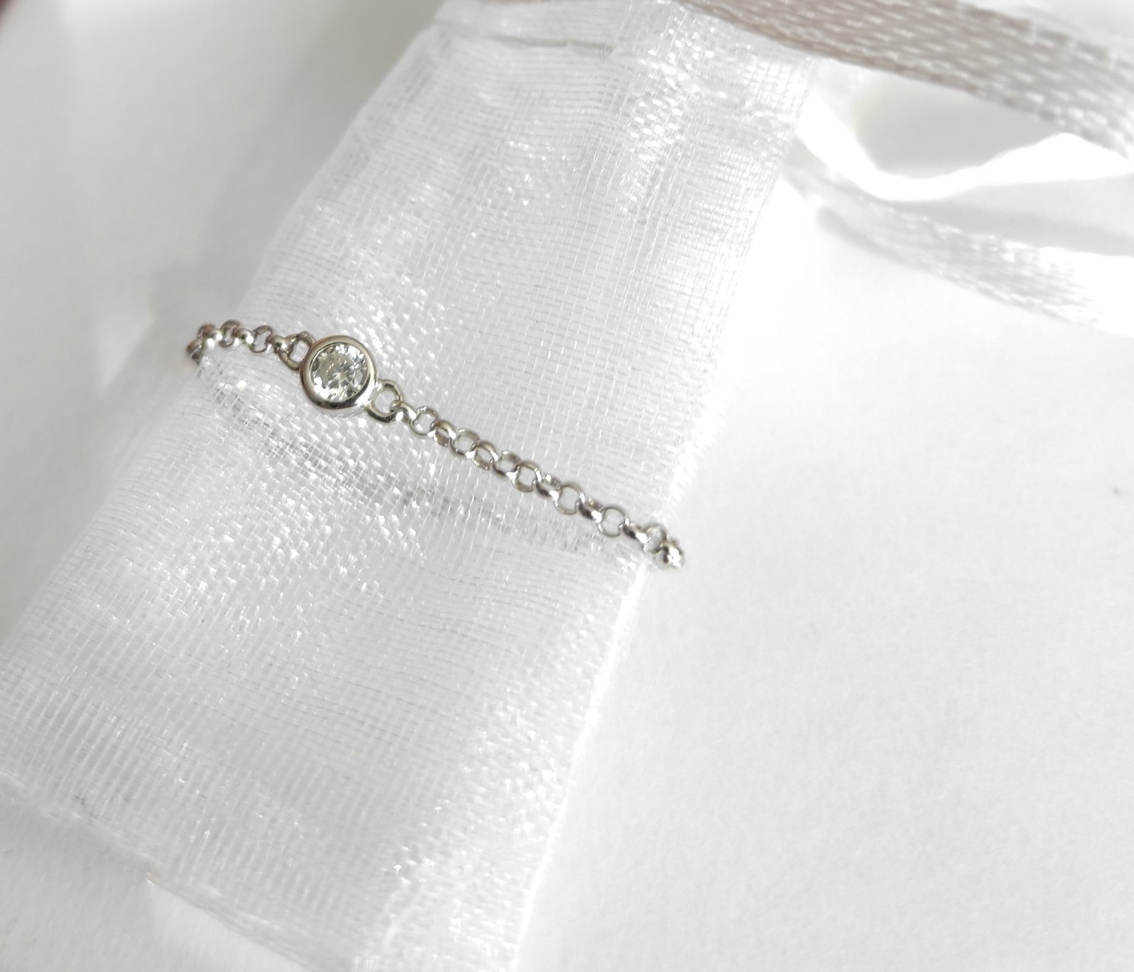Strieborný retiazkový prsteň s kamienkom , veľkosť 7 - priemer 1,7cm, kúpený z Etsy.