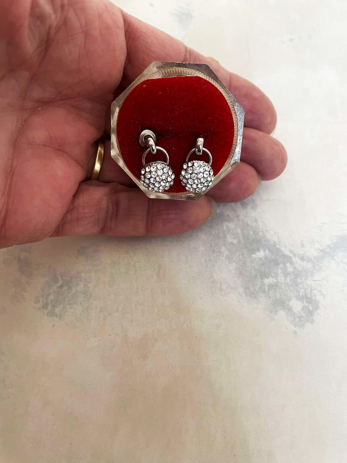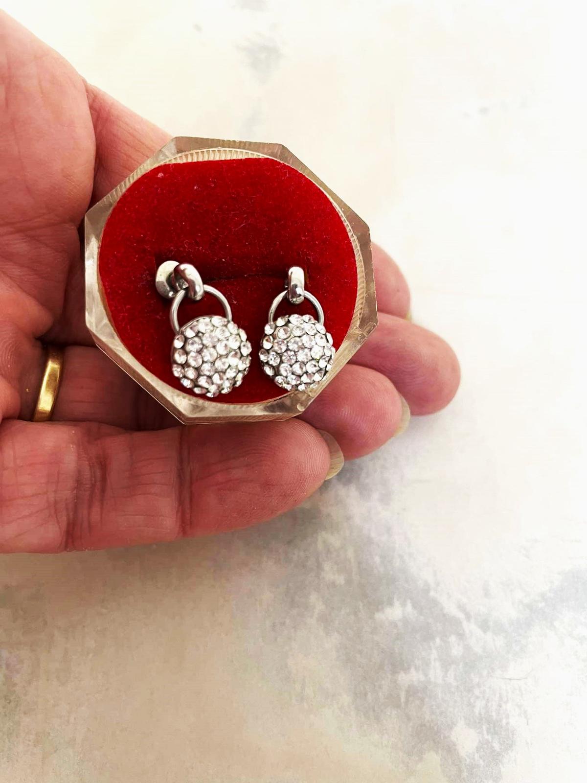 krásne - luxusné trblietavé náušnice, nie je to striebro,ale kvalitná bižutéria,top stav,priemer = 1 cm, nie sú ploché,ale je to pologuľa, sú to napichovačky,na spoločenské podujatia a svadby