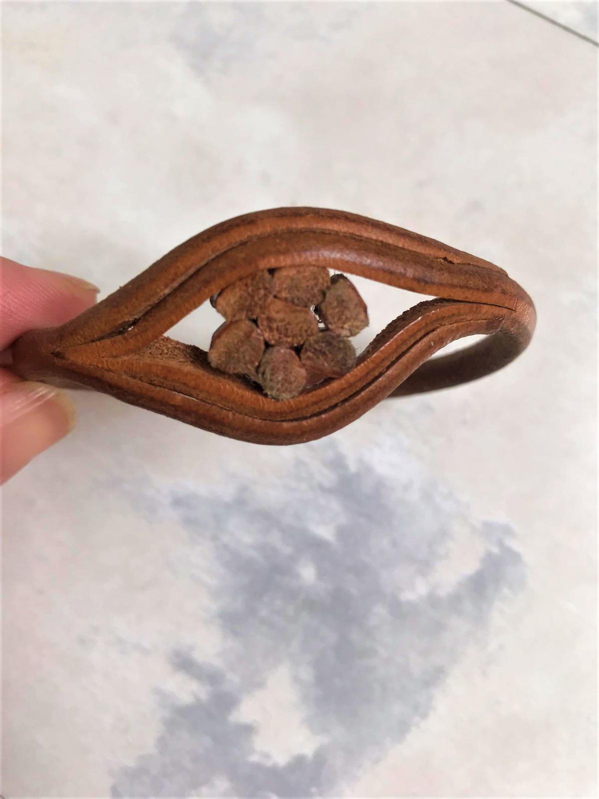 v top stave,nepoškodený,z 1 kusa z naturálnej kože,priemer = 7 - 7.2 cm