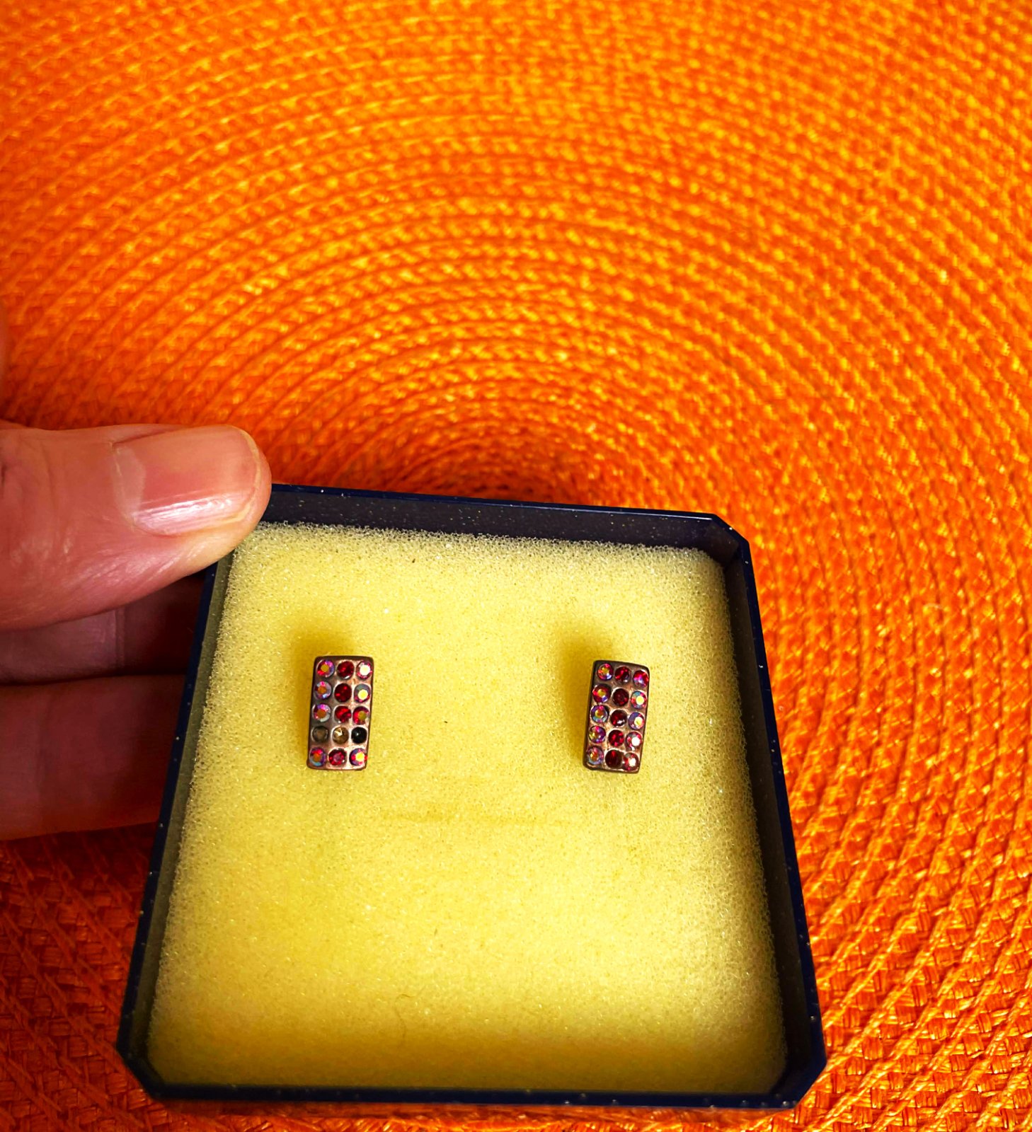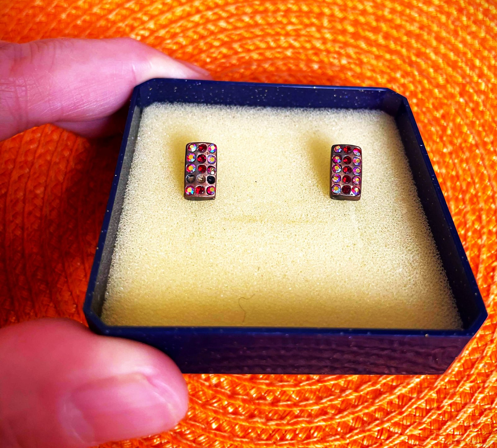 zaujímavé napichovačky,osadené 15 drobnými - v svetle rôzne hrajúcimi kamienkami,1 x 0,5 cm,osadené v mosadznom rámiku