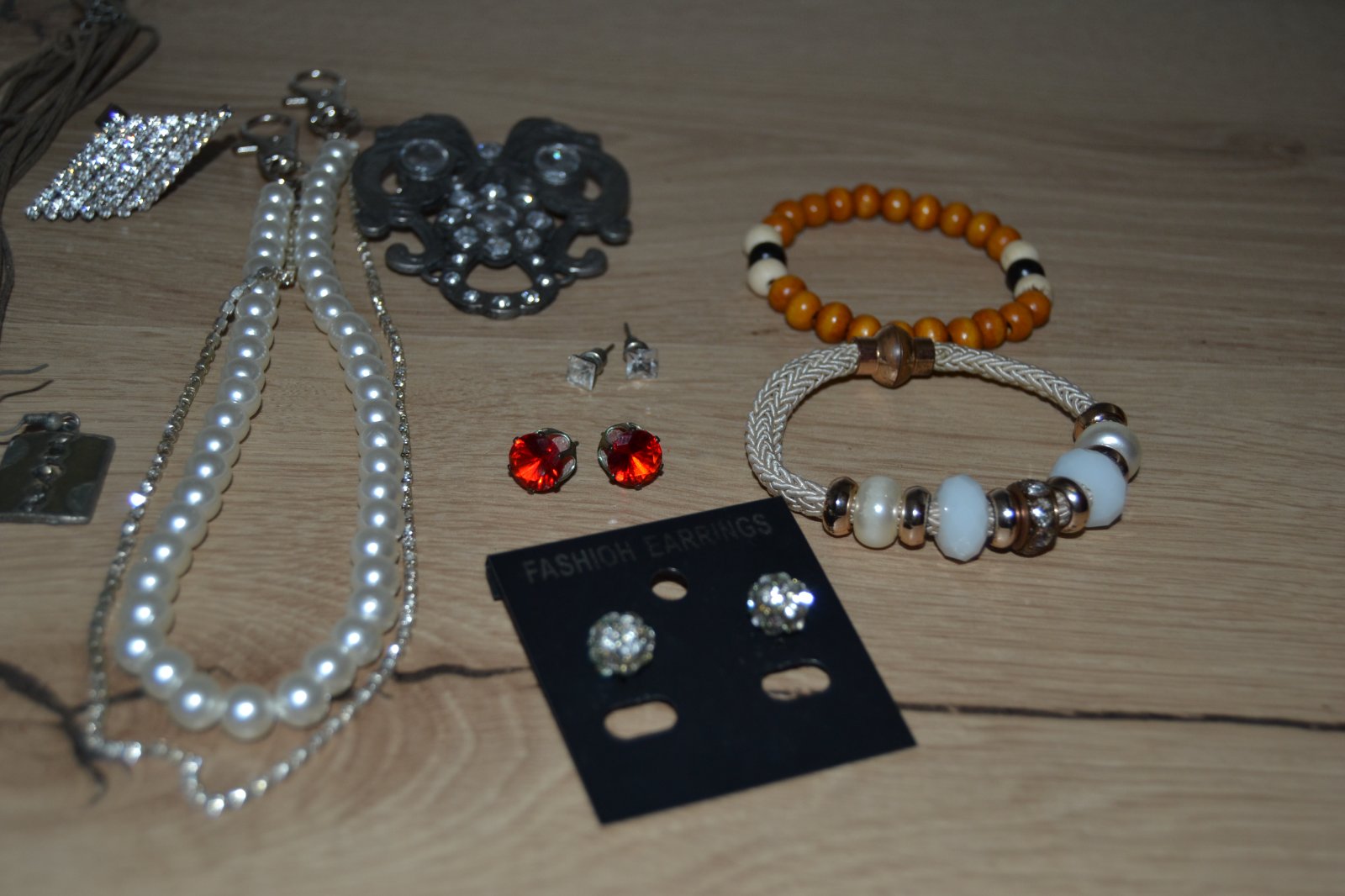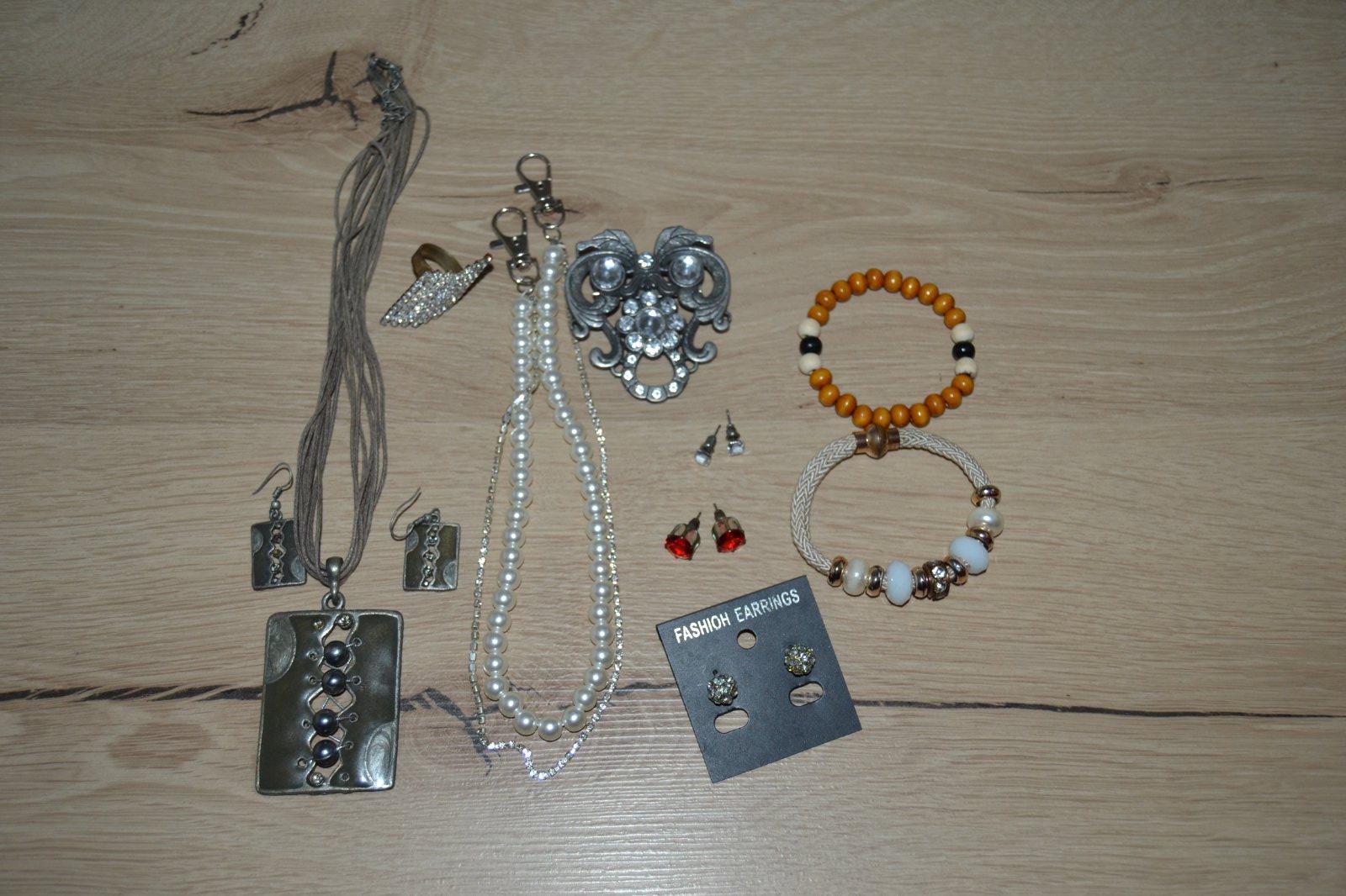 Bižutérne šperky 3 sady balené po 11 ks/7e za sadu, obsahujú náhrdelníky, náušnice, brošne, prstene, náramky. Niektoré nepoužívané, zabalené.