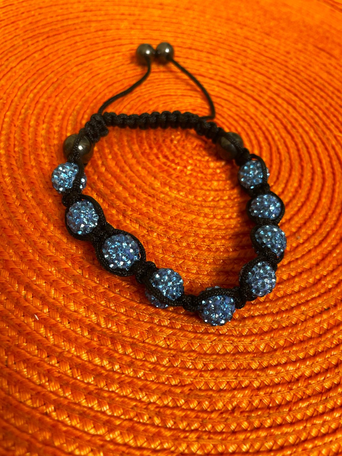 málo používaný,pôsobí luxusne,guličky - očká sú štrasové,trblietavé,sivé guličky sú magnetky,ktoré môžte spojiť,aby vám nezavadzali