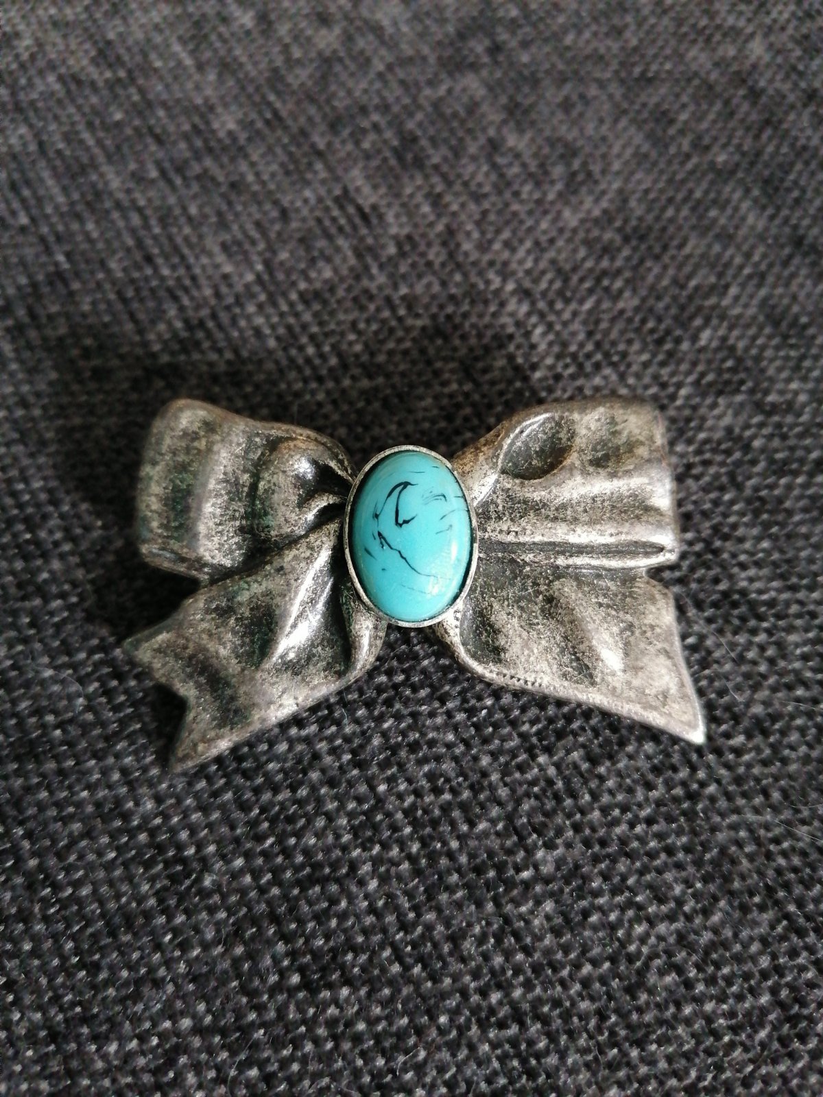 Predám kovovú brošňu s tyrkysovým stredom. Osobný odber možný v Bratislave. Cena + poštovné. Posielam aj Packetu aj Poštou.