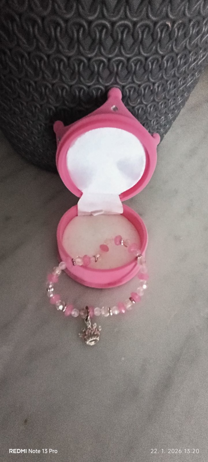 Náramok bez chyby, krabička má v zadu platový spojením, ktorý je utrhnutý. Vrchný poklop drží na hodvábnej látke