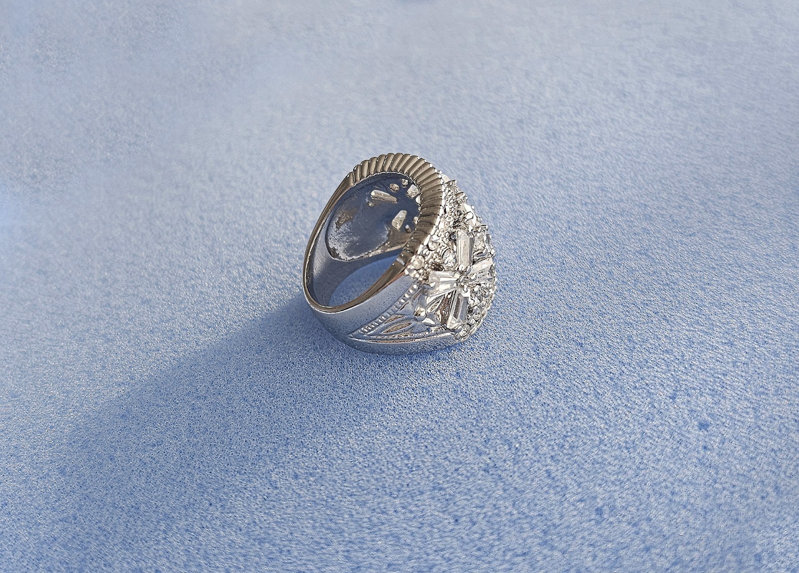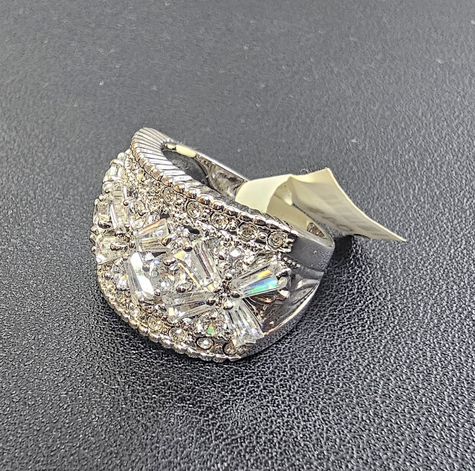 Prsteň je rhodiovaný s kryštálmi CZ. Hlavný odtieň kameňa DIAMANT. Rhodiované prstene sú zo zliatiny medi a zinku. Pokovanie rhodiom zlepšuje vzhľad a životnosť šperku. Vel.9 (18.89mm - vnútorný priemer prsteňa, 59-60). Dodávané v darčekovom balení.