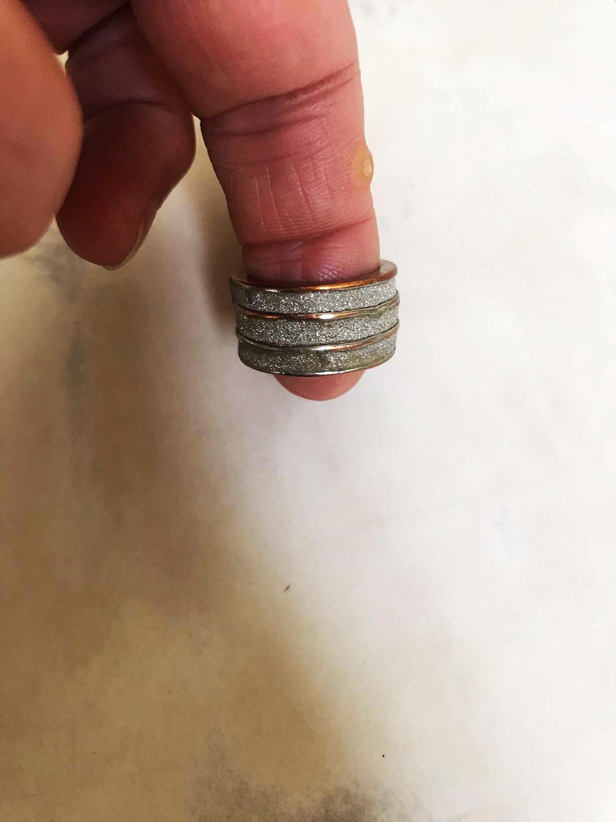 zaujímavý,nie je to striebro ,priemer = 1,8 cm, výška = 1 cm,pre tenšie prsty