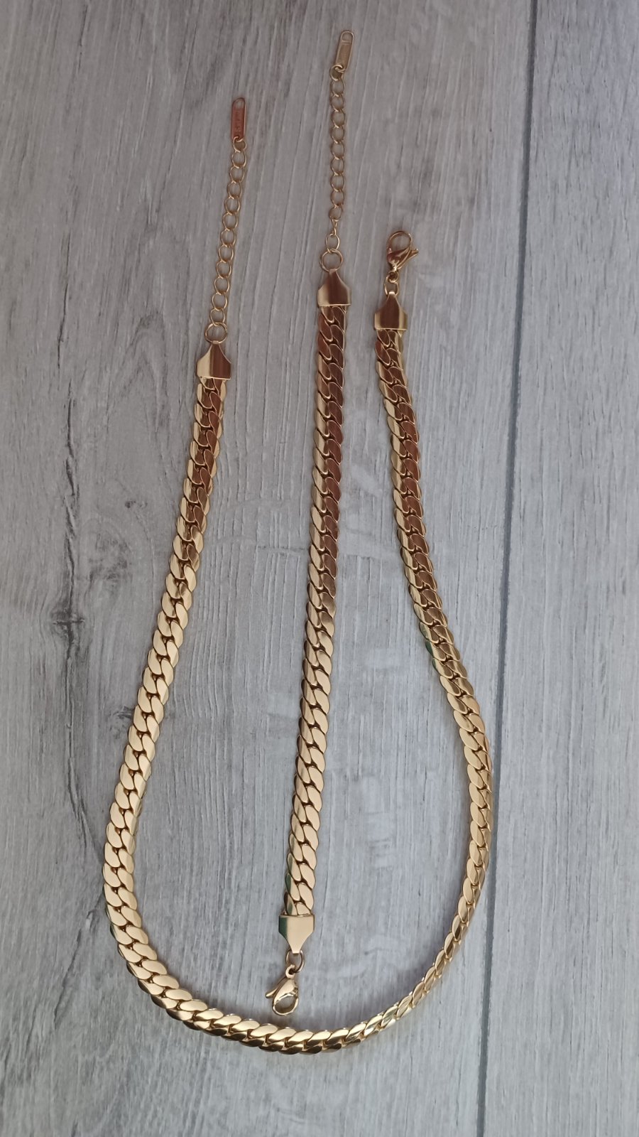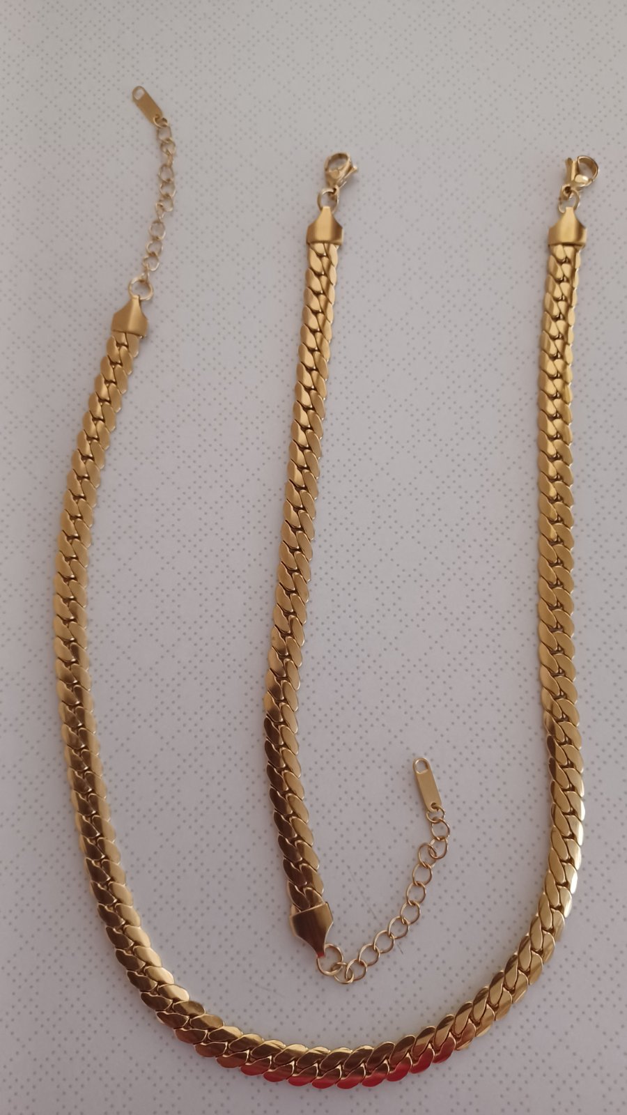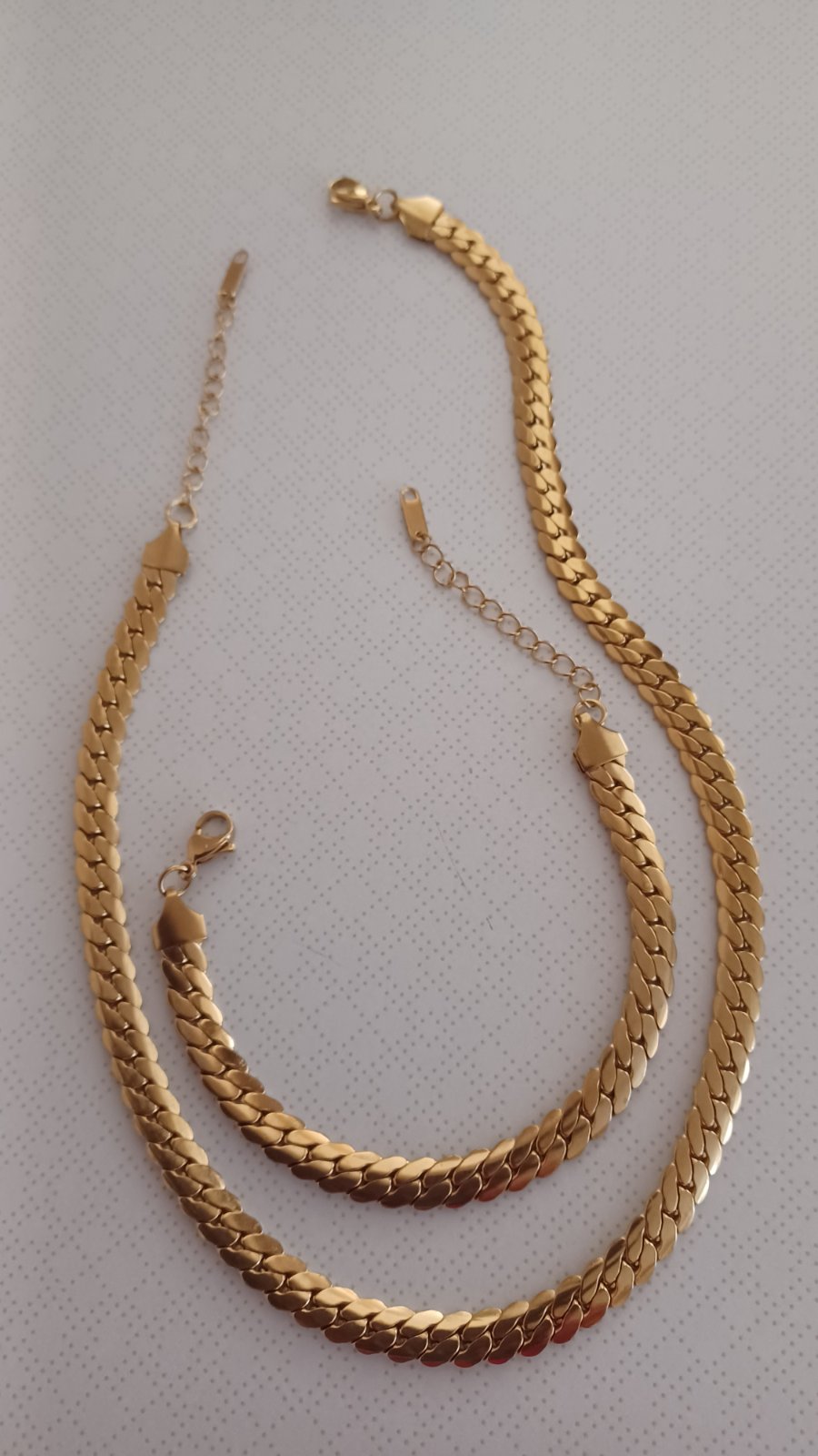 Predám dámsky set z chirurgickej ocele náhrdelník 41cm+zapínanie5,5cm+náramok.17,5cm+zapínanie 6cm.....šírka:7mm,,,,